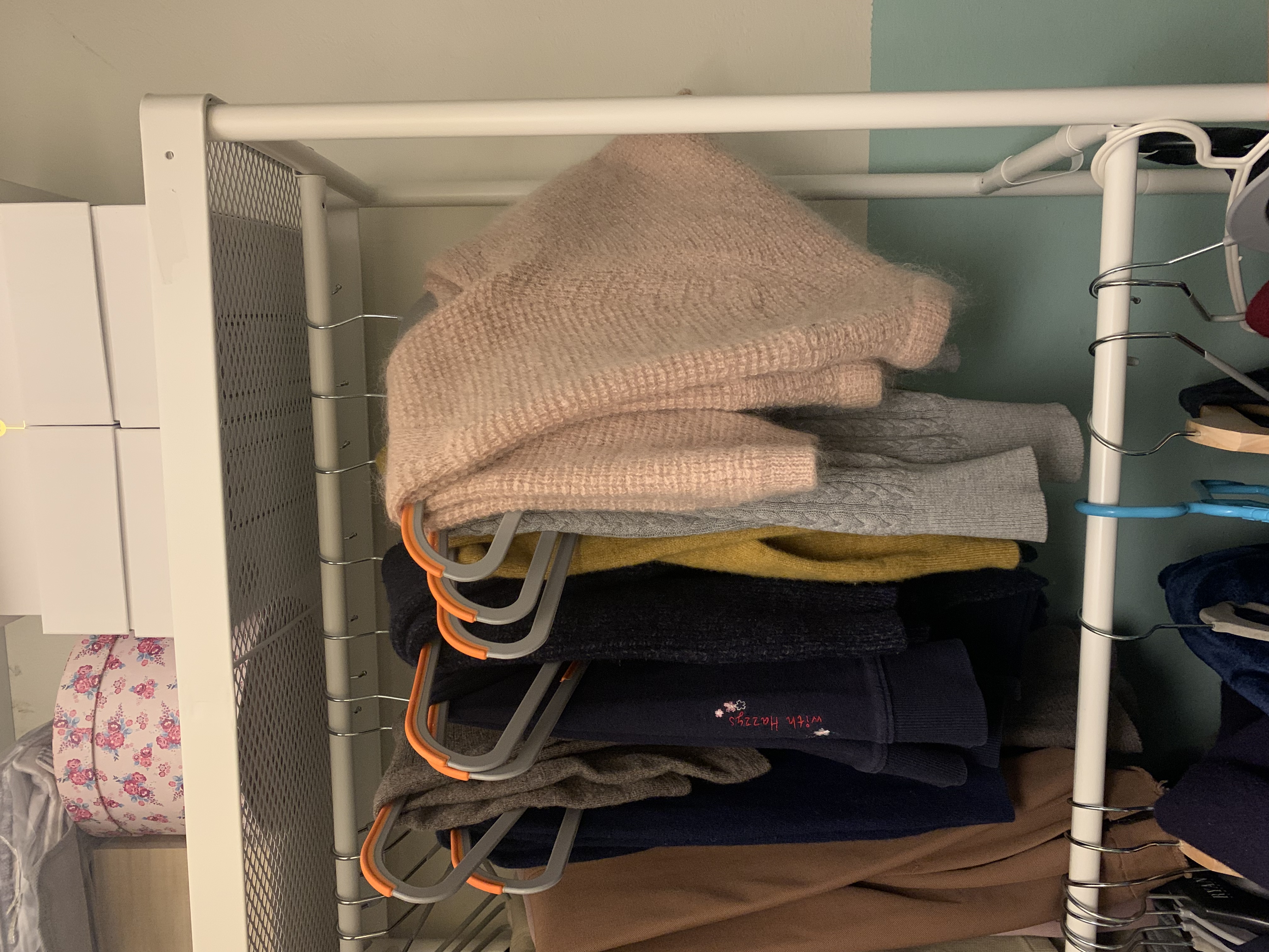 니트도 옷걸이에 걸어서 보관해주고 있어요.