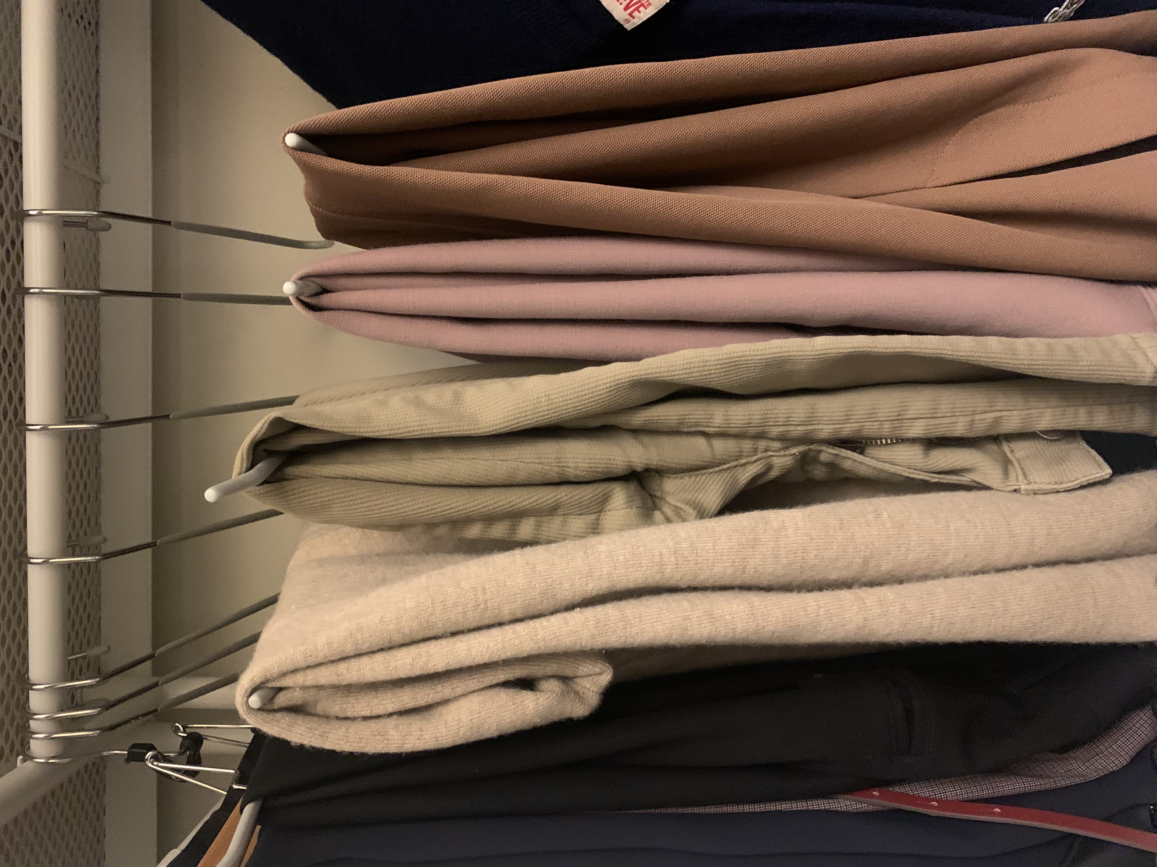 바지는 L자형 바지걸이를 사용해서 수납의 부피를 줄이고 있어요. 바지에 자국도 거의 남지 않아서 너무 잘 쓰는 옷걸이예요.