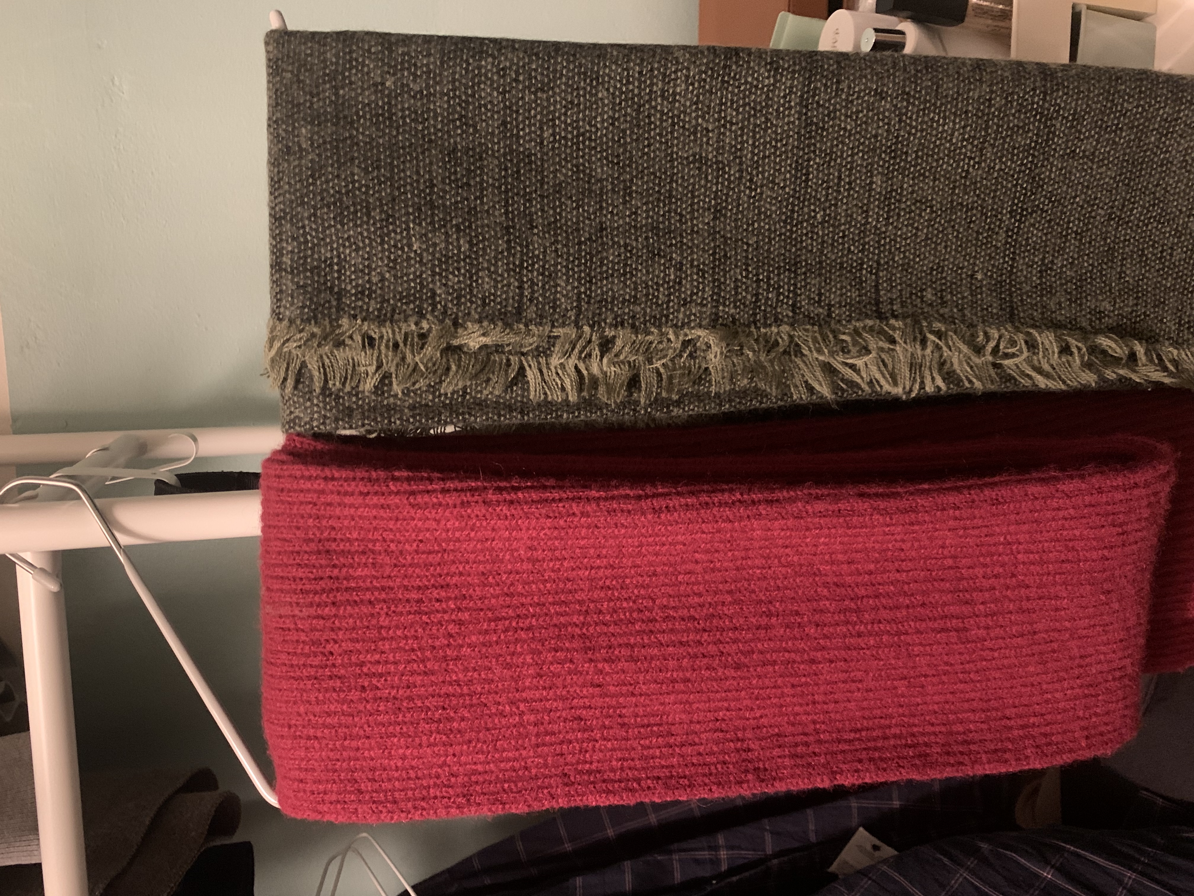 겨울철에 자주 사용하는 목도리들도 L자형 바지걸이에 걸어주니 흘러내리지 않고 수납하기에 좋아요