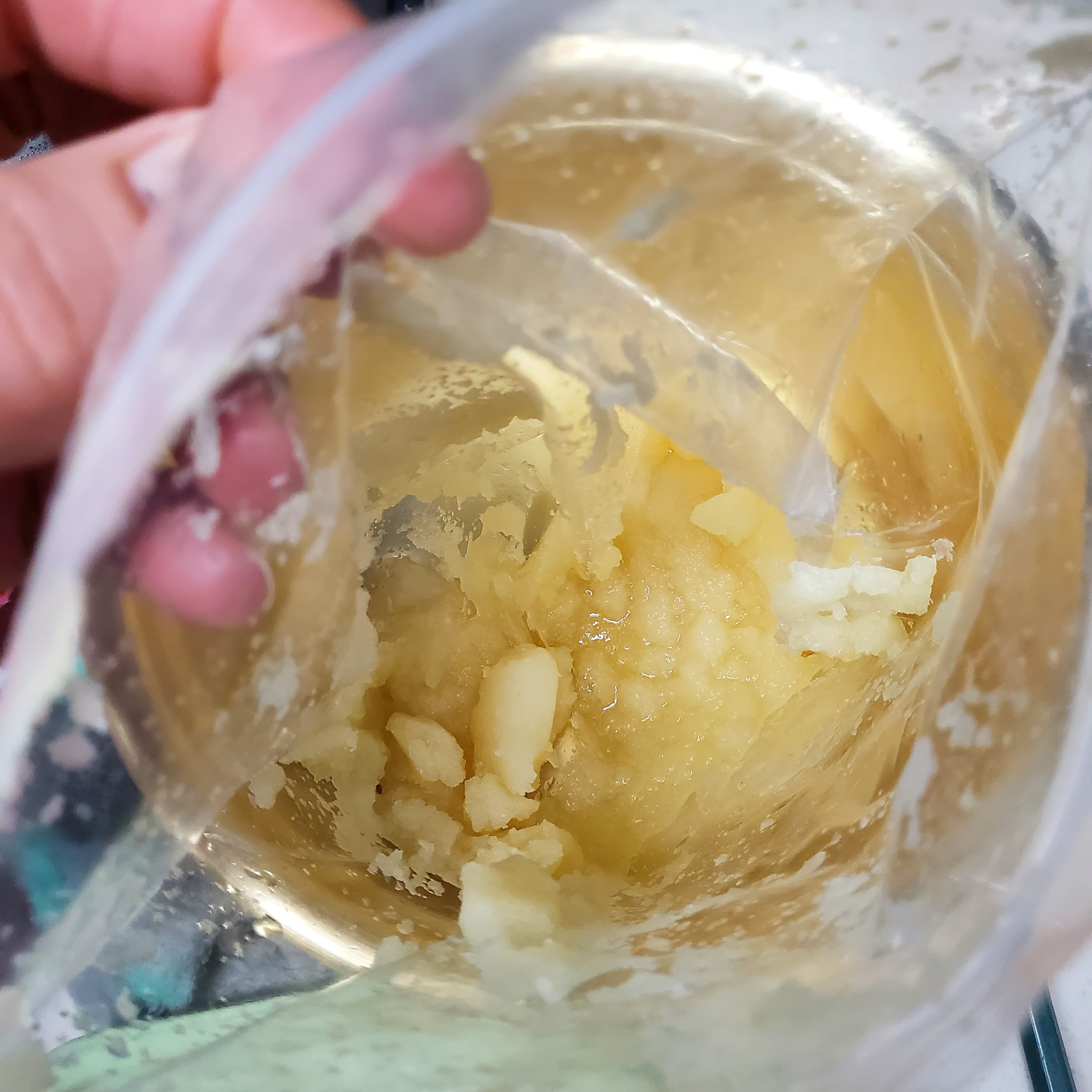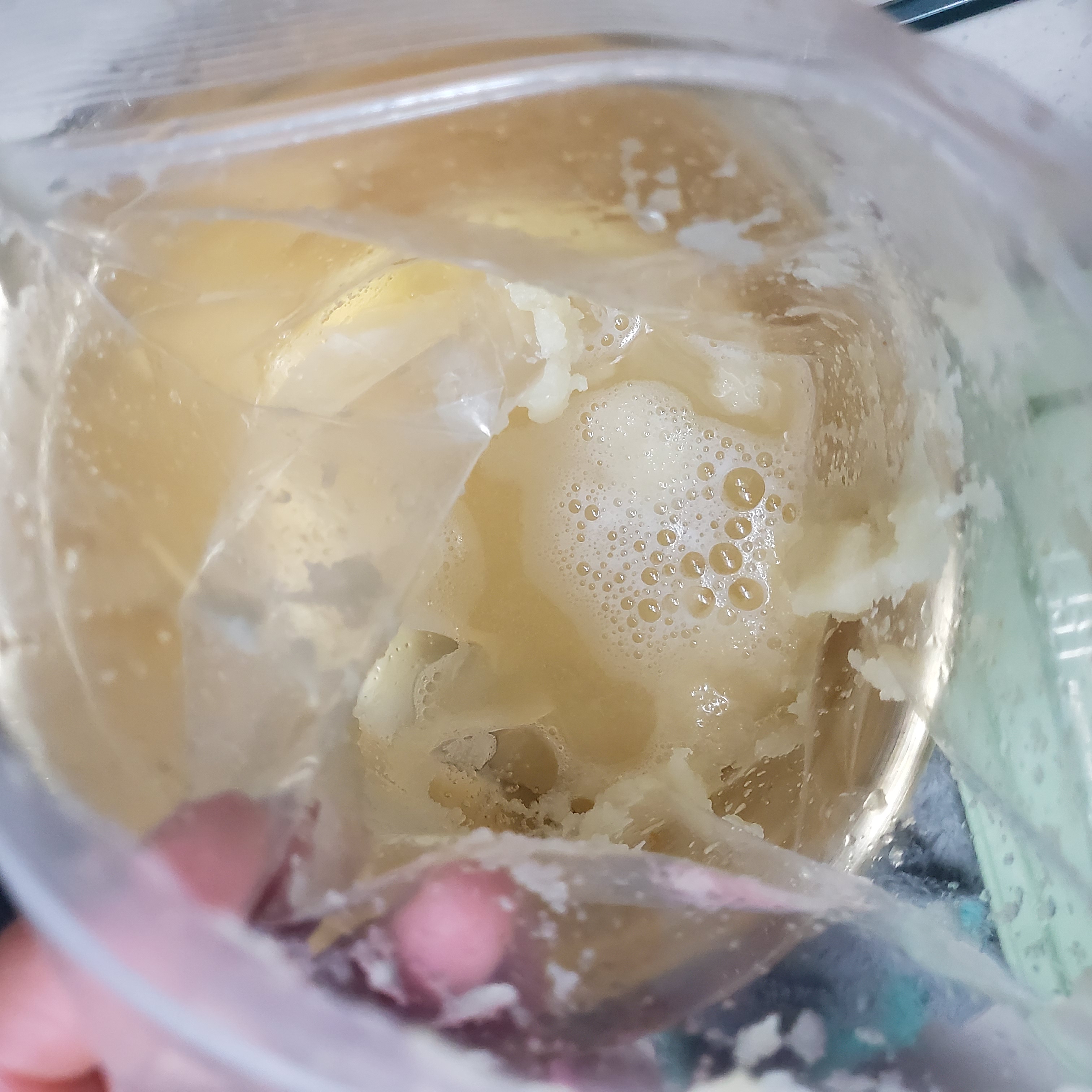 마늘 갈아 지퍼팩에 보관 후 냉동해서 사용하는데 거의 다 쓴 마늘 녹여 물 넣어 알뜰하게 사용하고 지퍼팩도 세척해줘요