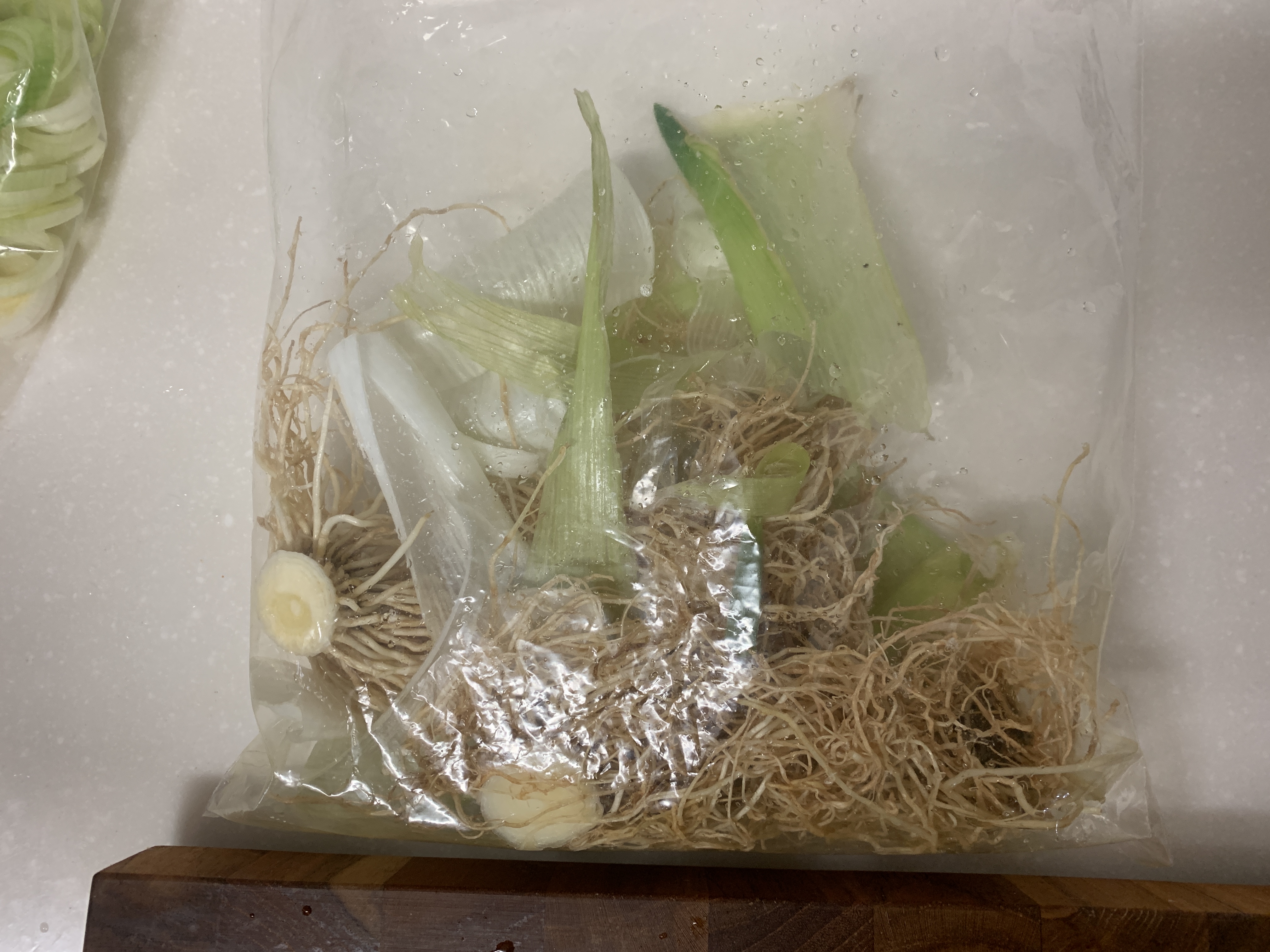 육수용으로 쓸 파 뿌리와 껍질은 깨끗하게 씻어서 따로 모아주었어요.