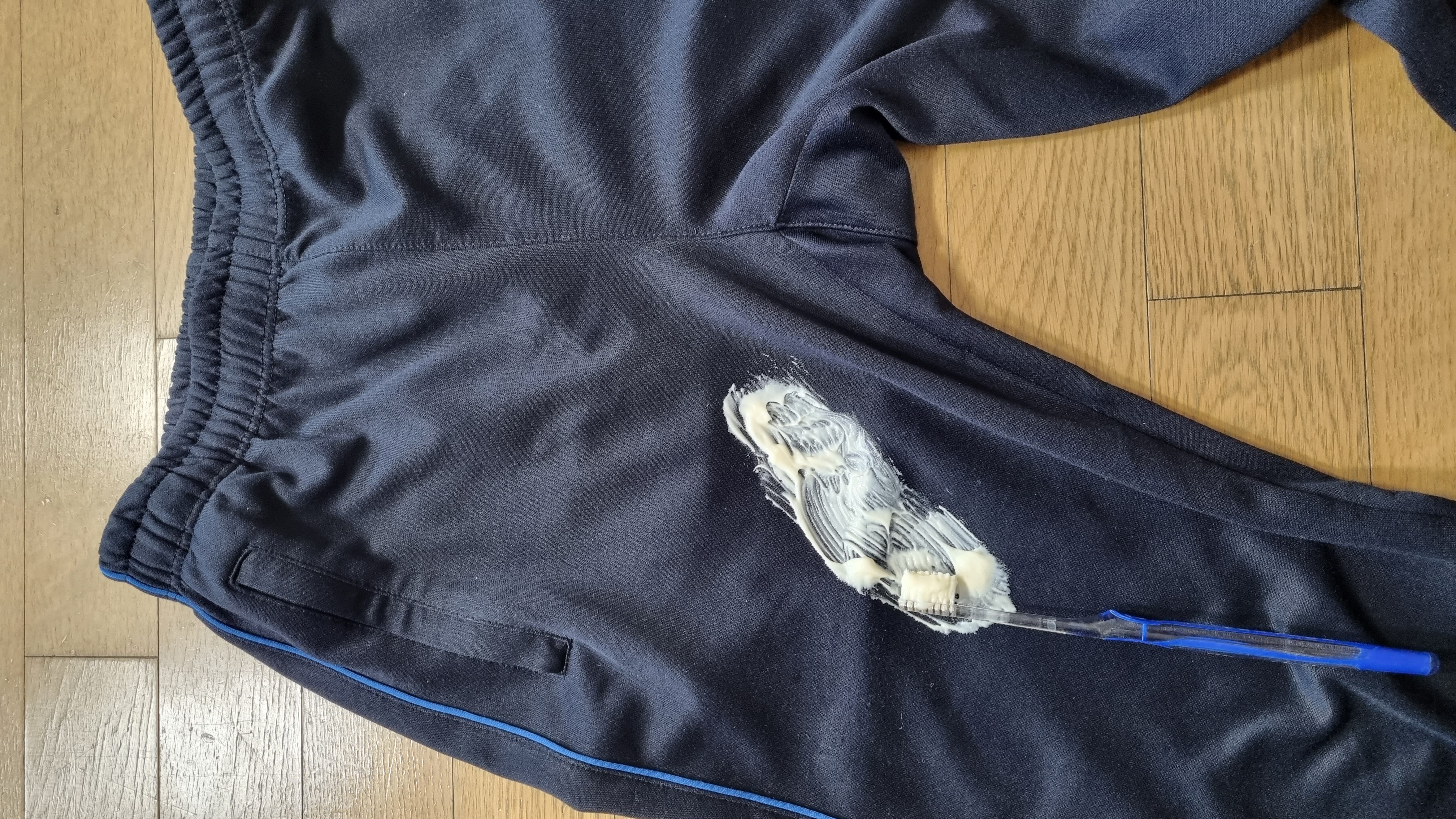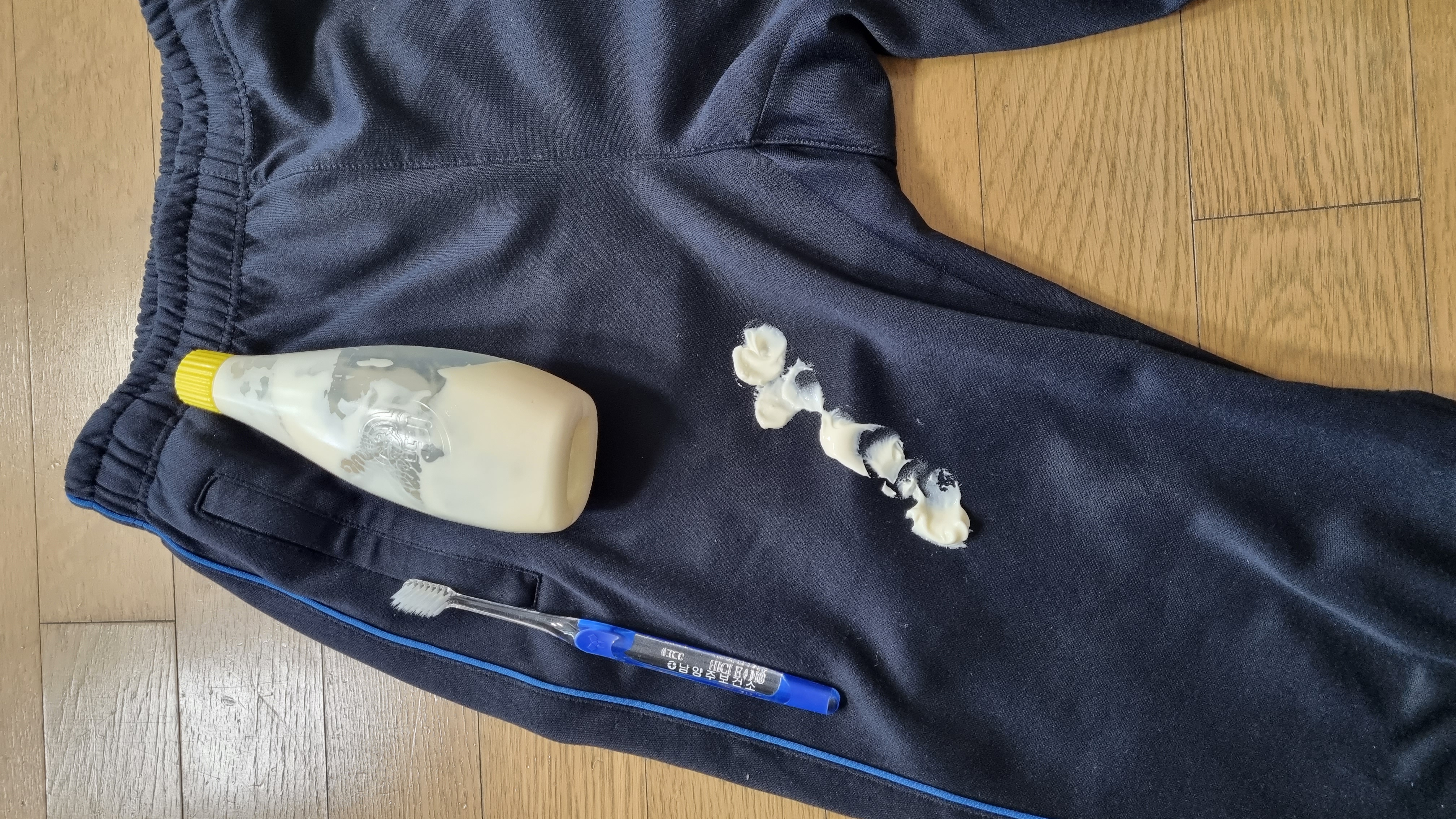 아들이 체육복 바지에 껌을 묻혀왔네요.