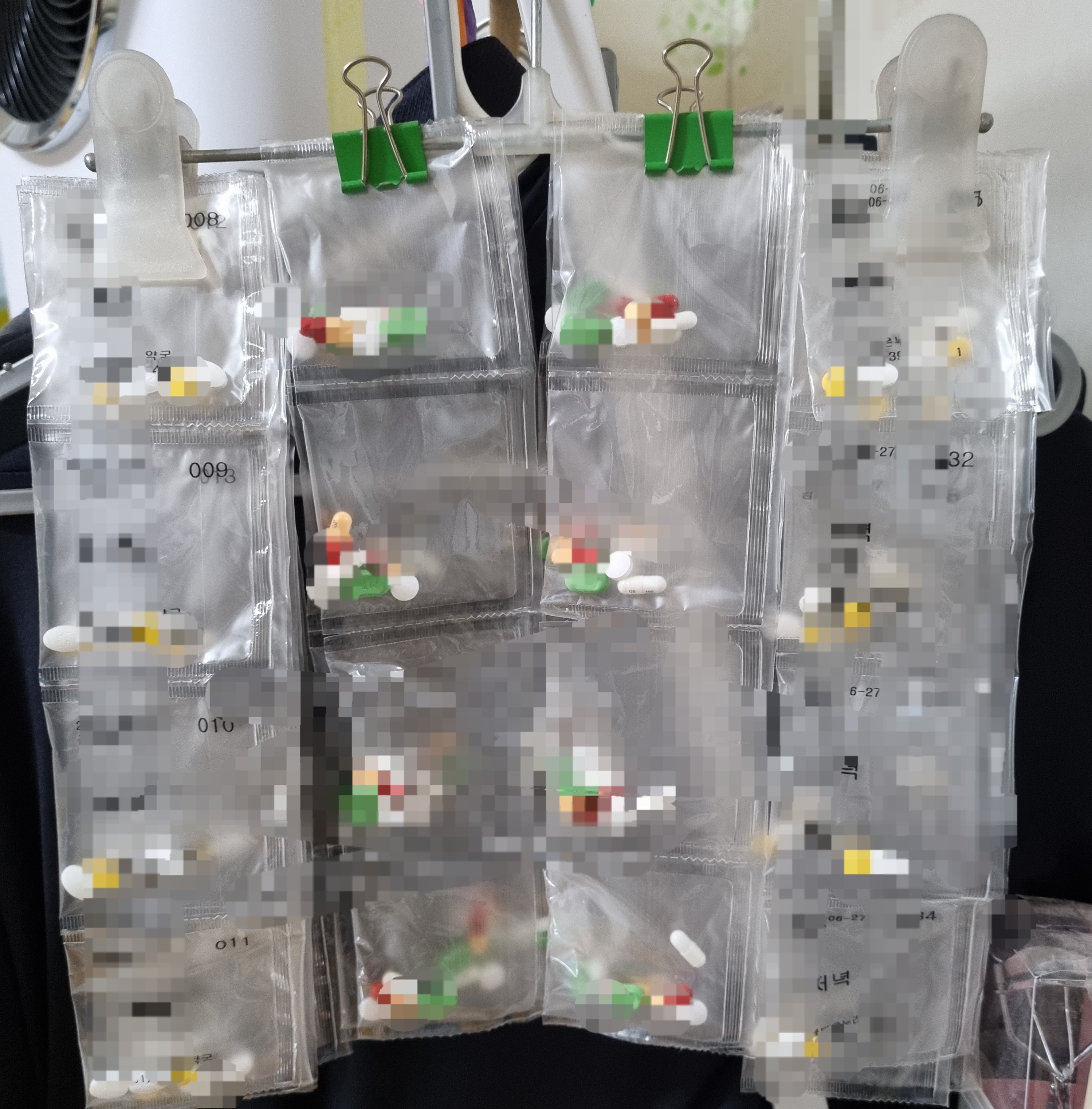 약봉지를 집게옷걸이에