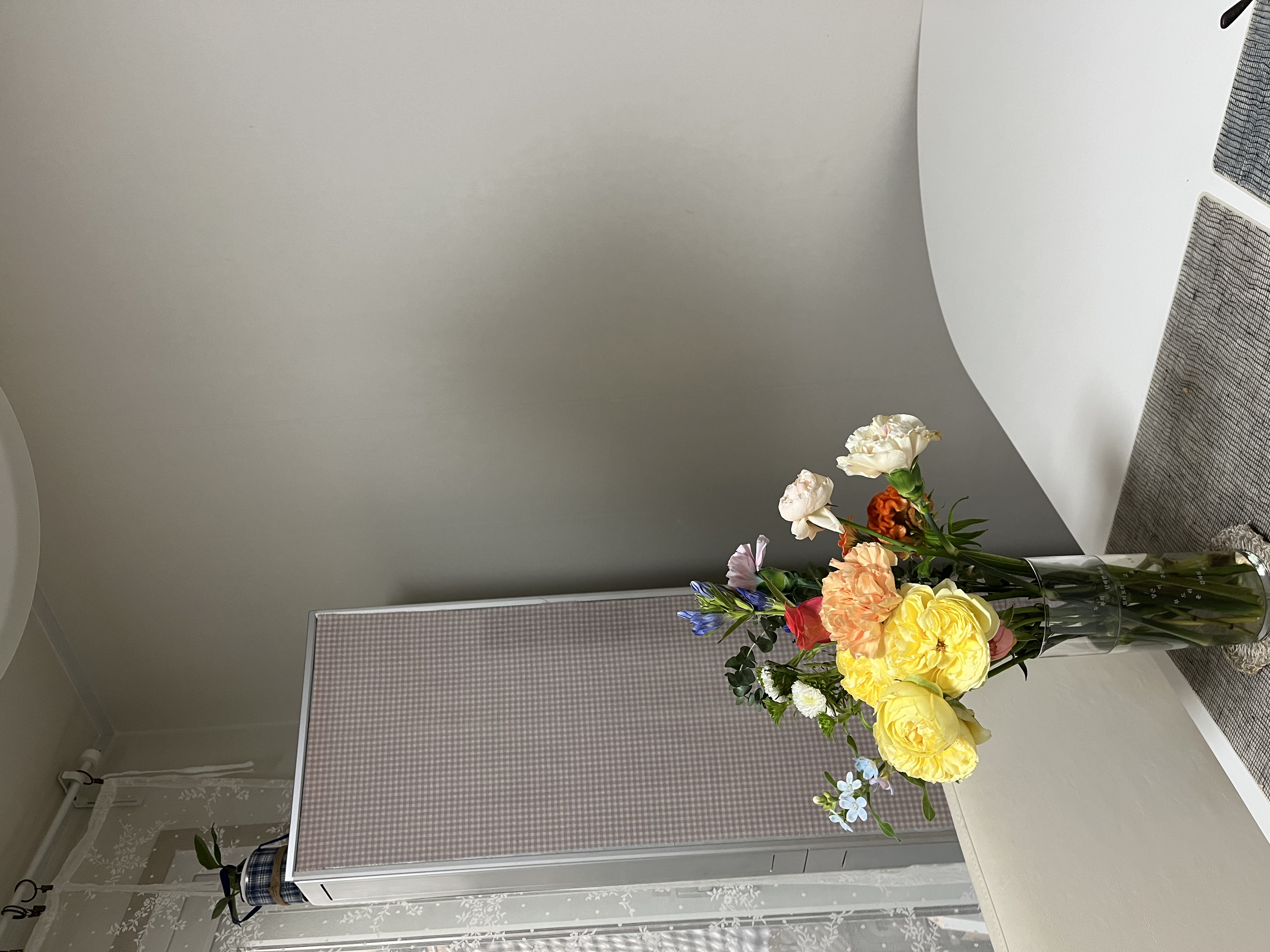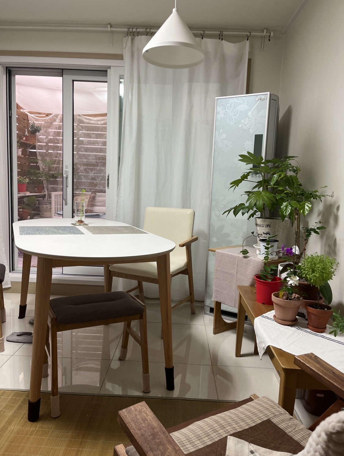 사용 하는데는 문제 데는데, 촌스런 외관 때문에 신경 쓰였던 에어컨 ! 한방의 천을 사용해 가렸더니 아주 심플해졌어요!!