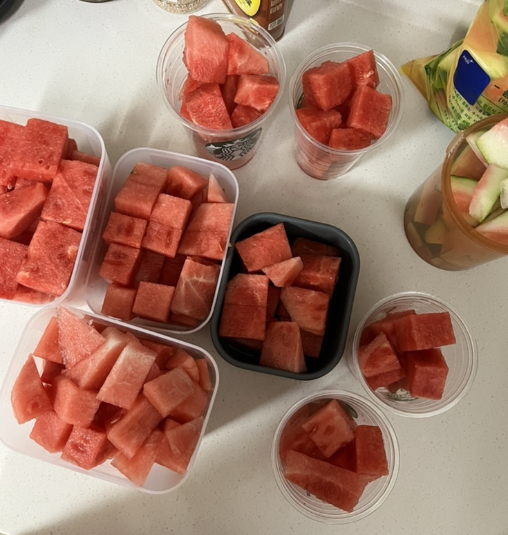 수박을 넣으셨네요 전 뚜껑까지 씻어서 얼음 얼려요 술마실때 컵으로도 쓰고요