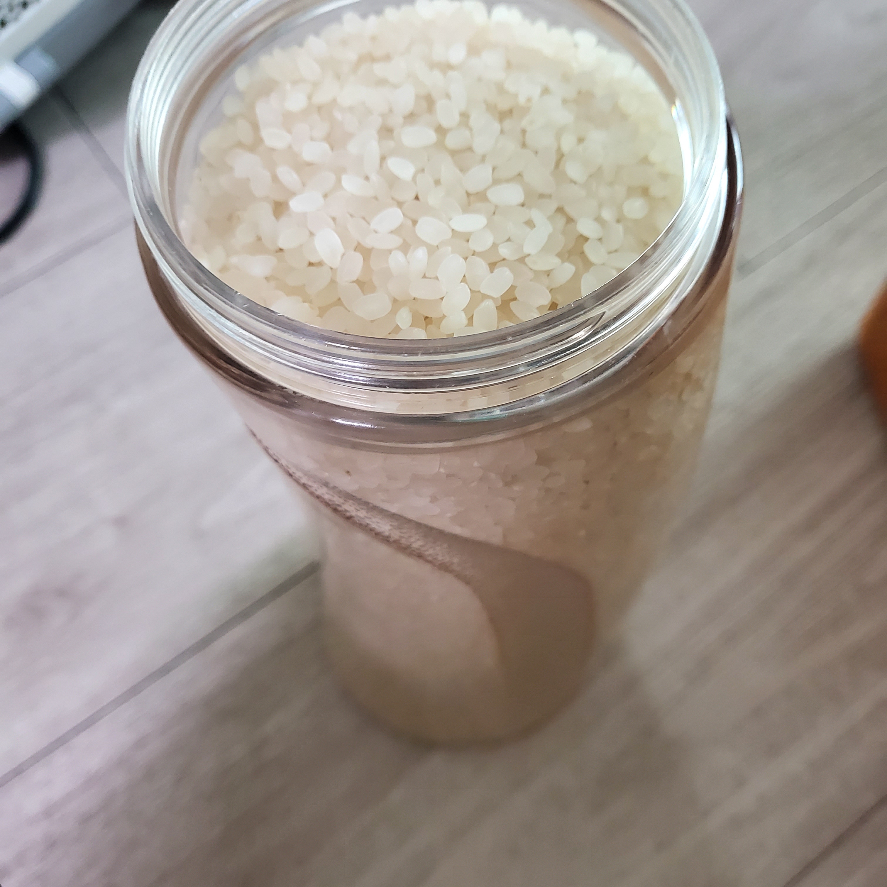 플라스틱 물통 활용해서 흰쌀 담아 보관하면 뚜껑열어 바로 쓸수있어 편하더라구요