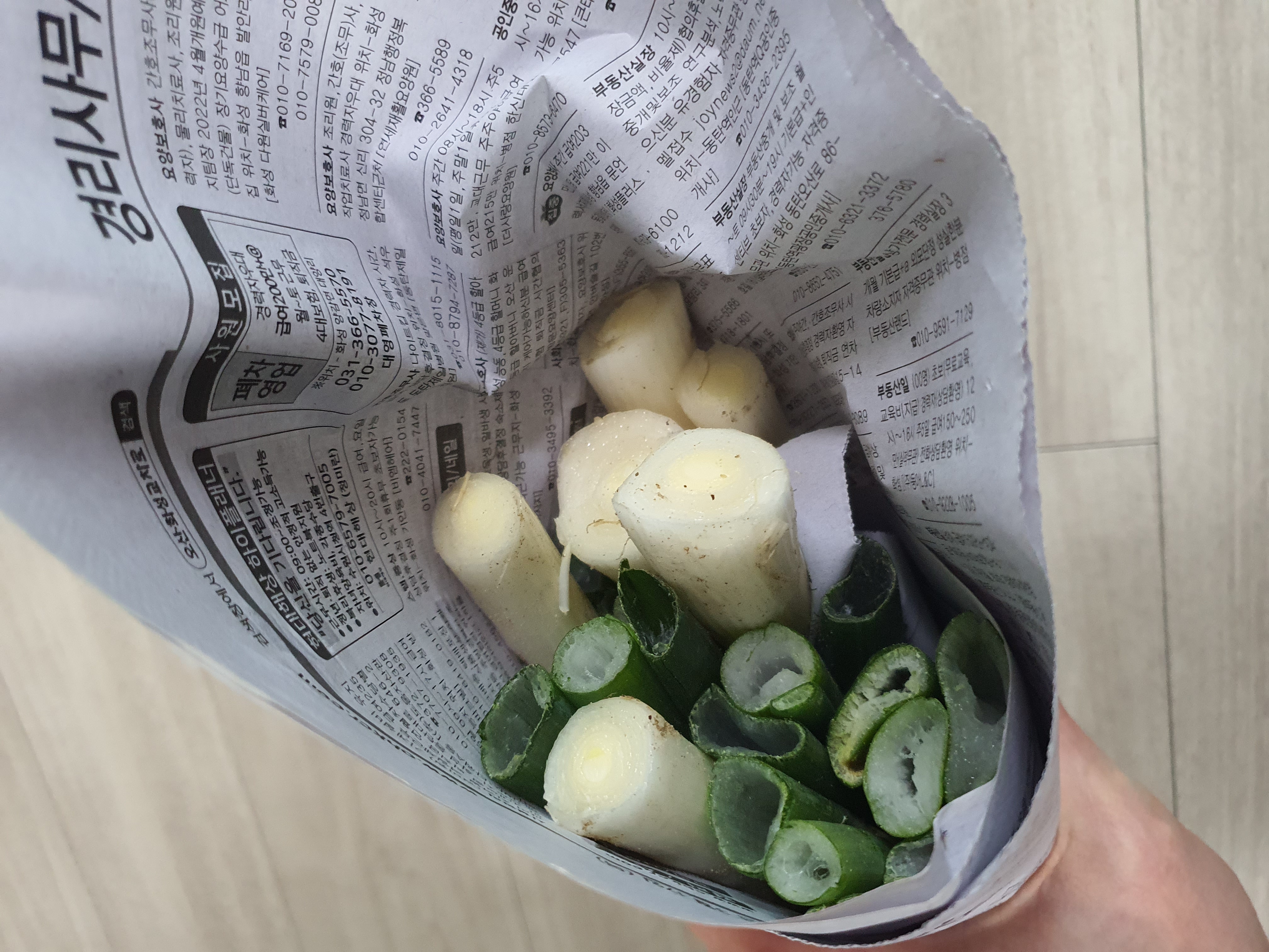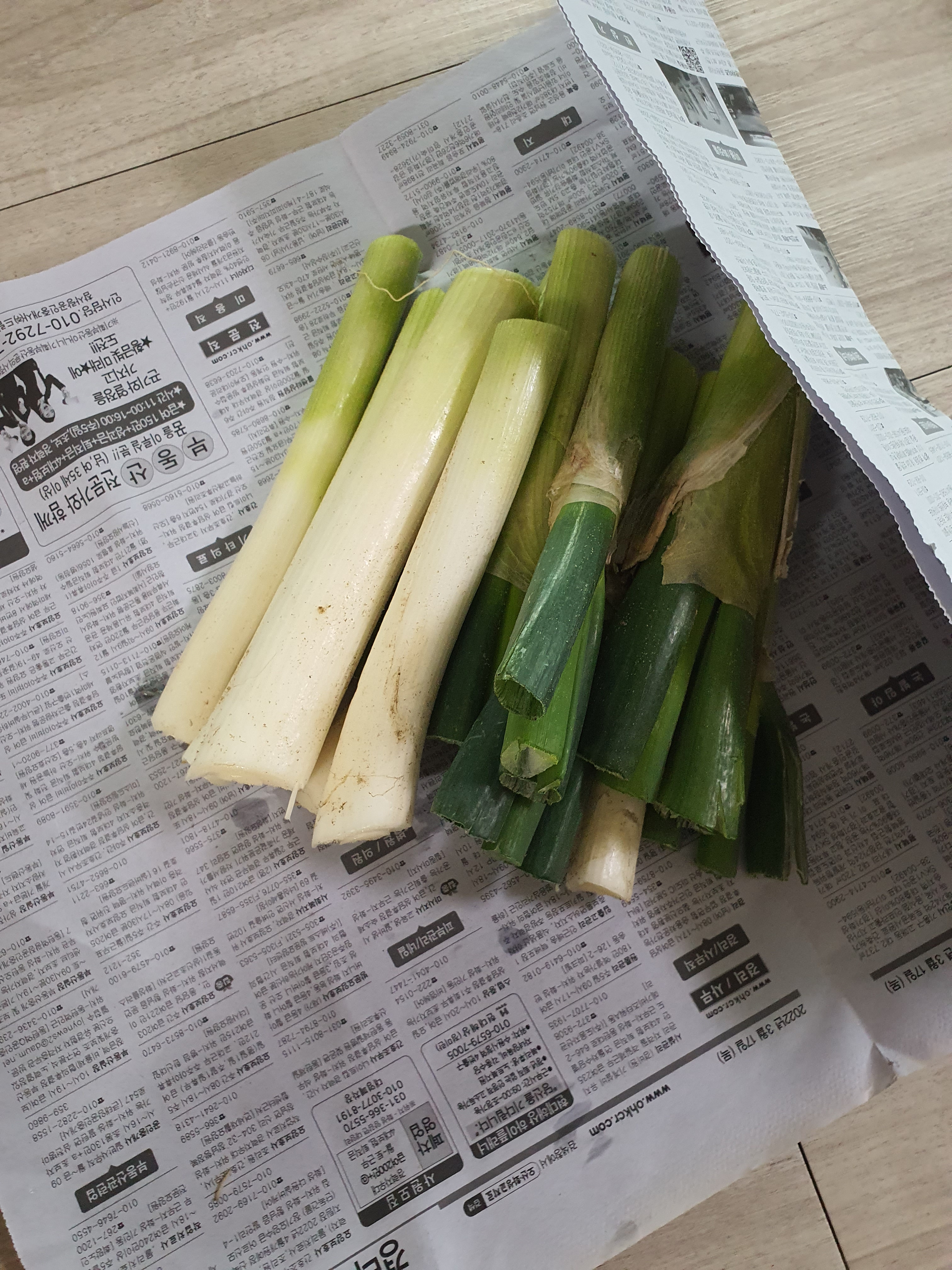 대파 신문지에 싸서 보관하고 있어요
