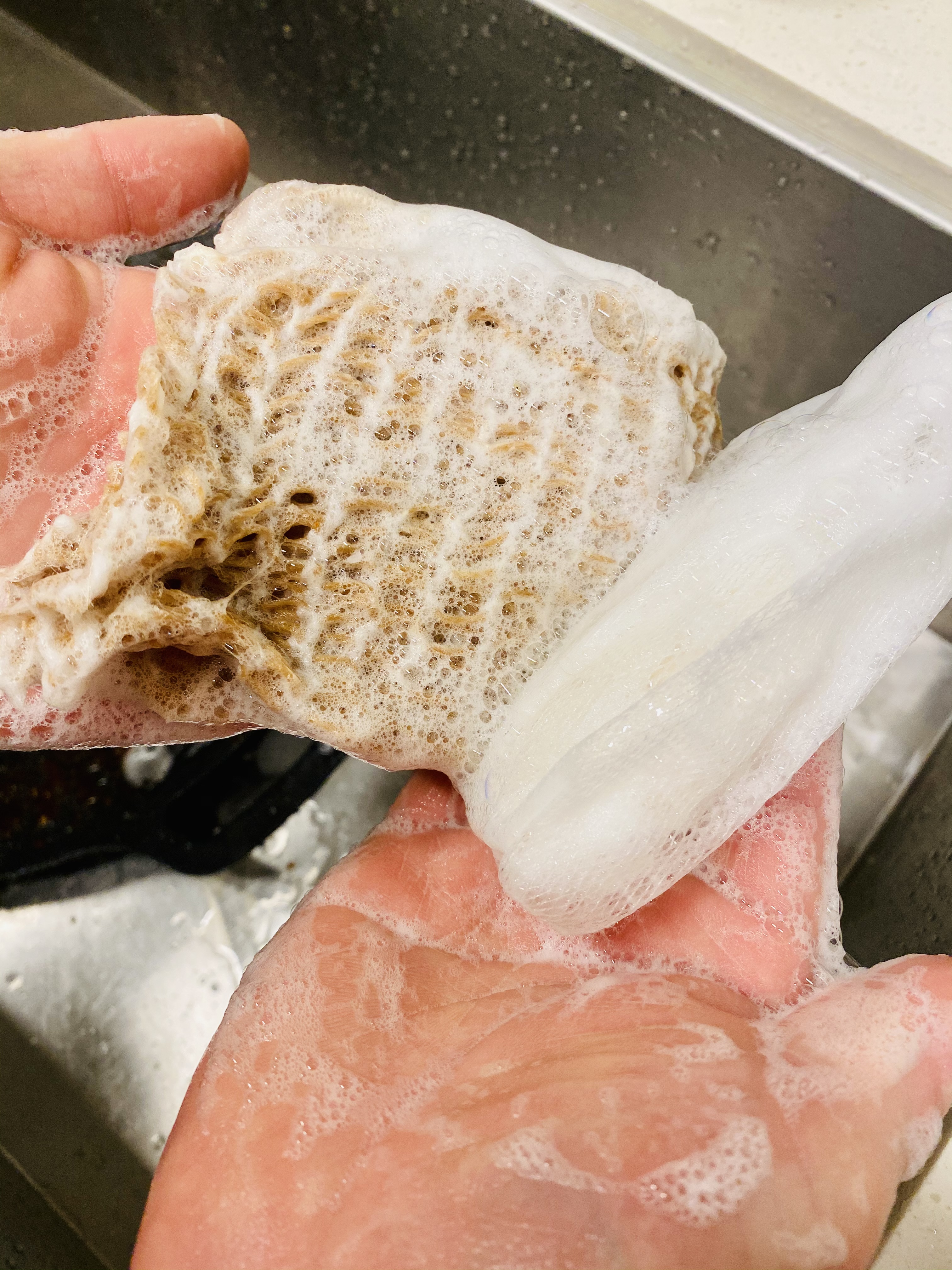 수많은 수세미에서 근래 안착한 제로웨이스트 첫 실천 아이템 삼베 수세미와 설거지 비누로 말끔하게 설거지했어요.