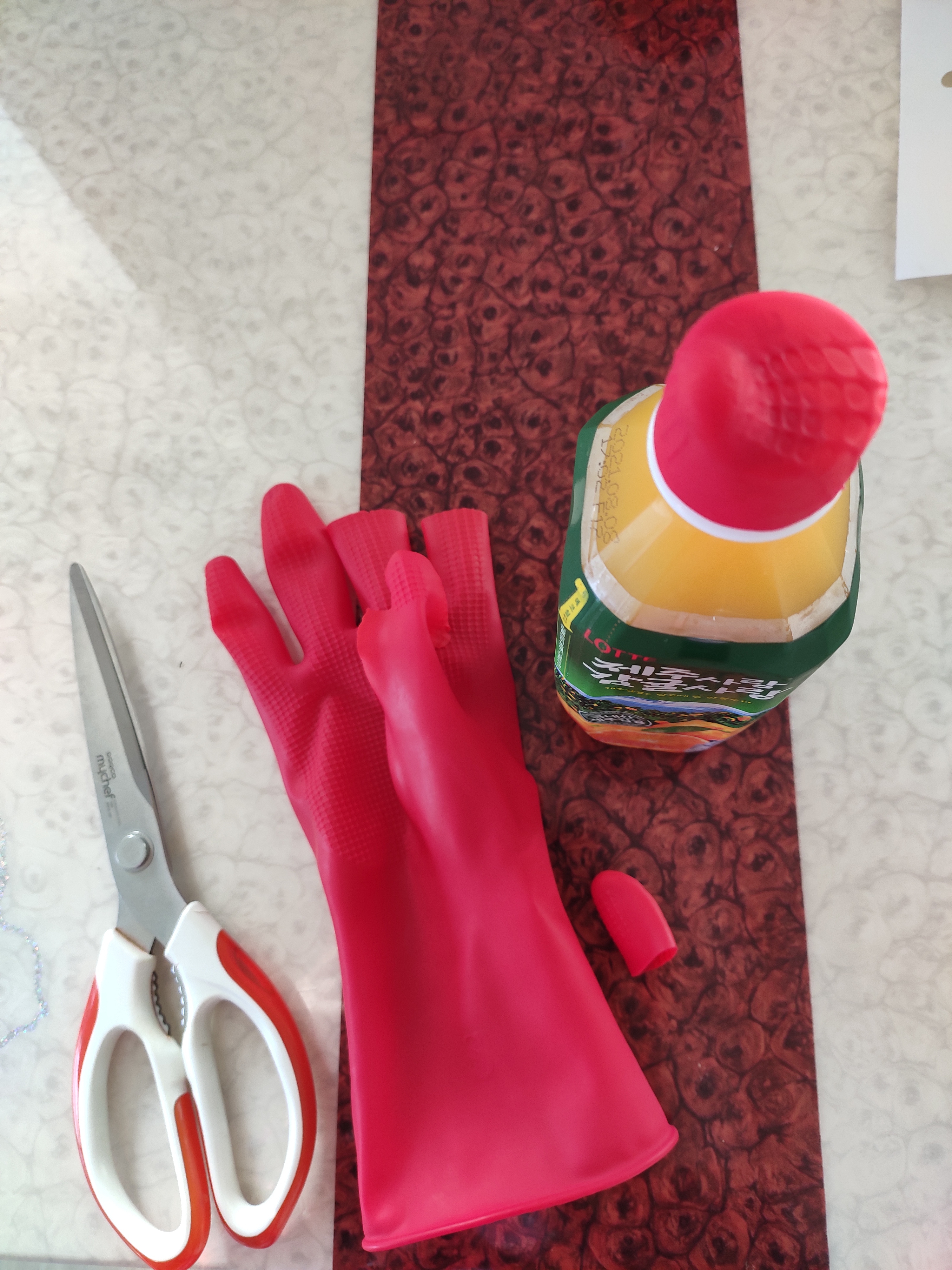 쓰다보면 한군데 꼭 구멍나는 고무장갑! 그냥 버리지말고 구멍안난 손가락 끝을 잘라서 먹다가남은 음료수 페트병 입구에 씌워주면 꽉 밀봉되서 새지도 않고 탄산이나 맛도 변함없이 유지해줘서 참 좋아요!