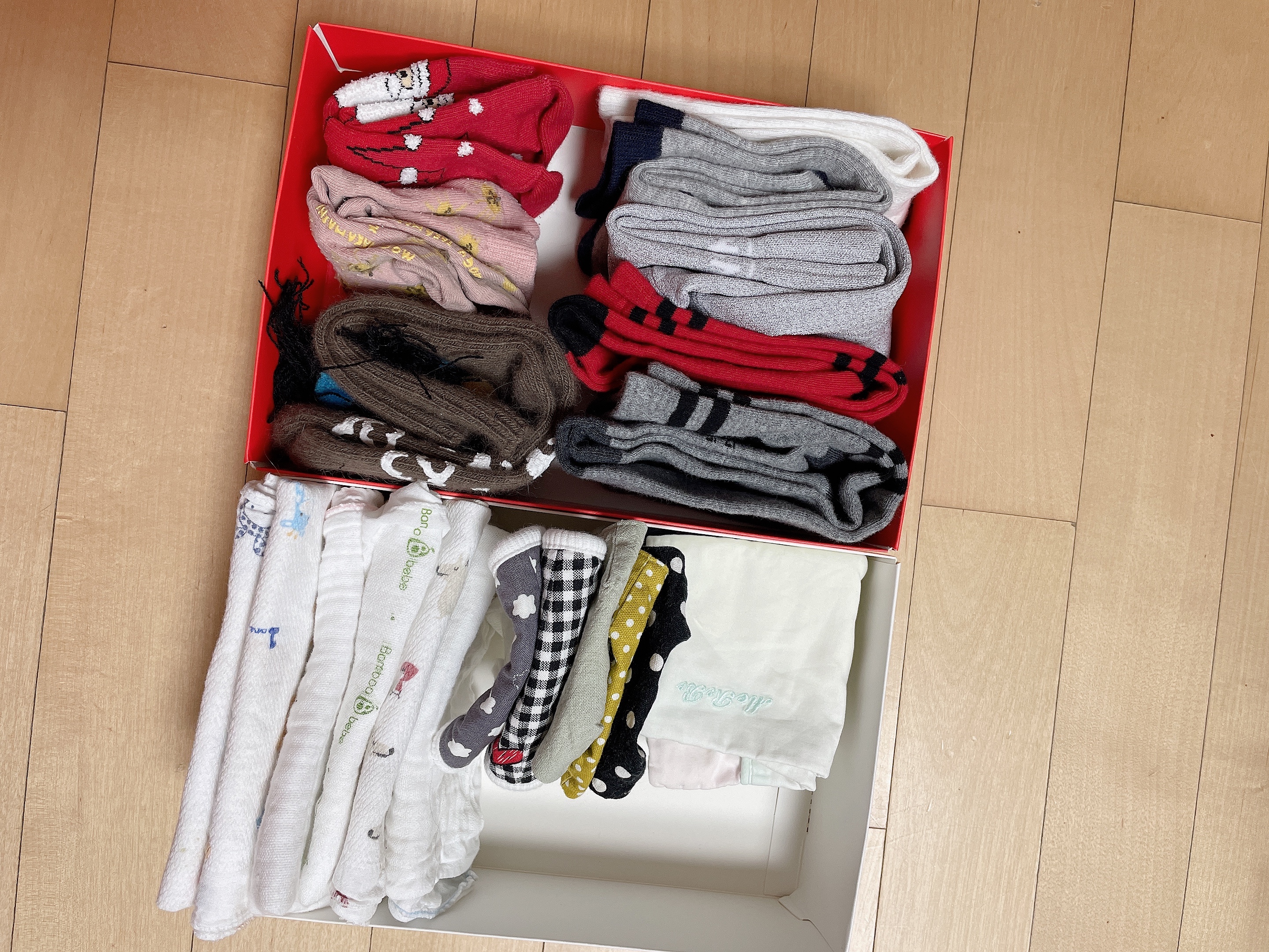 양말, 손수건, 마스크를 구분해서 담아주었어요.