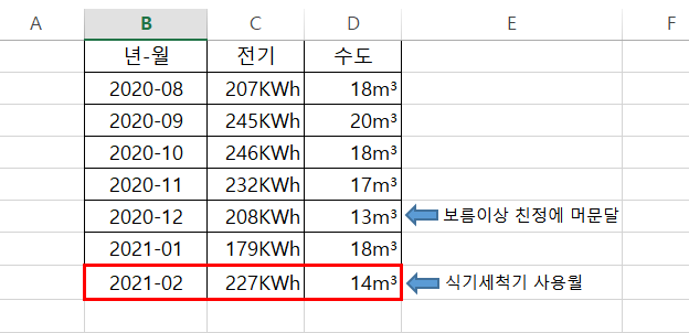 작년 8월부터 올해1월 6개월간의 평균 전기 사용량 219.5KWh, 수도는 17.33m³ 로 2월사용량과 비교하니 정말 전기요금은 아주 살짝 늘고 수도요금은 줄었네요 :) 초기구입과 설치 비용을 제외한다면 식기세척기로 인해 가계에 미치는 영향은 미미한듯 합니다.