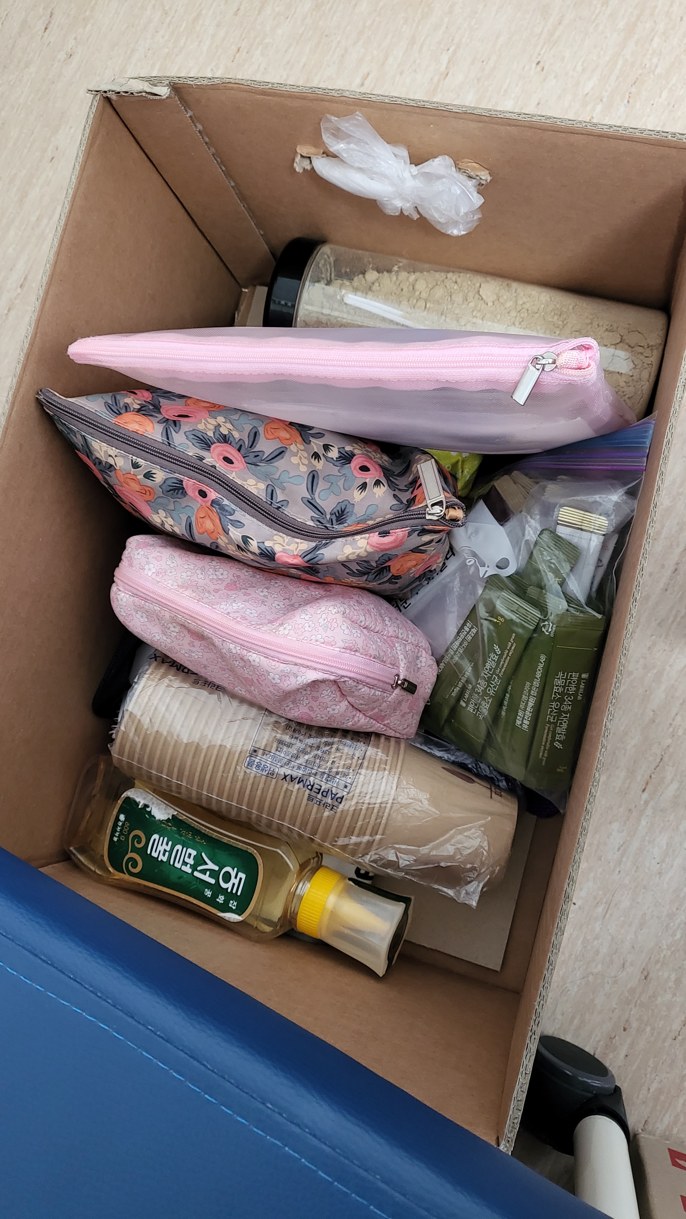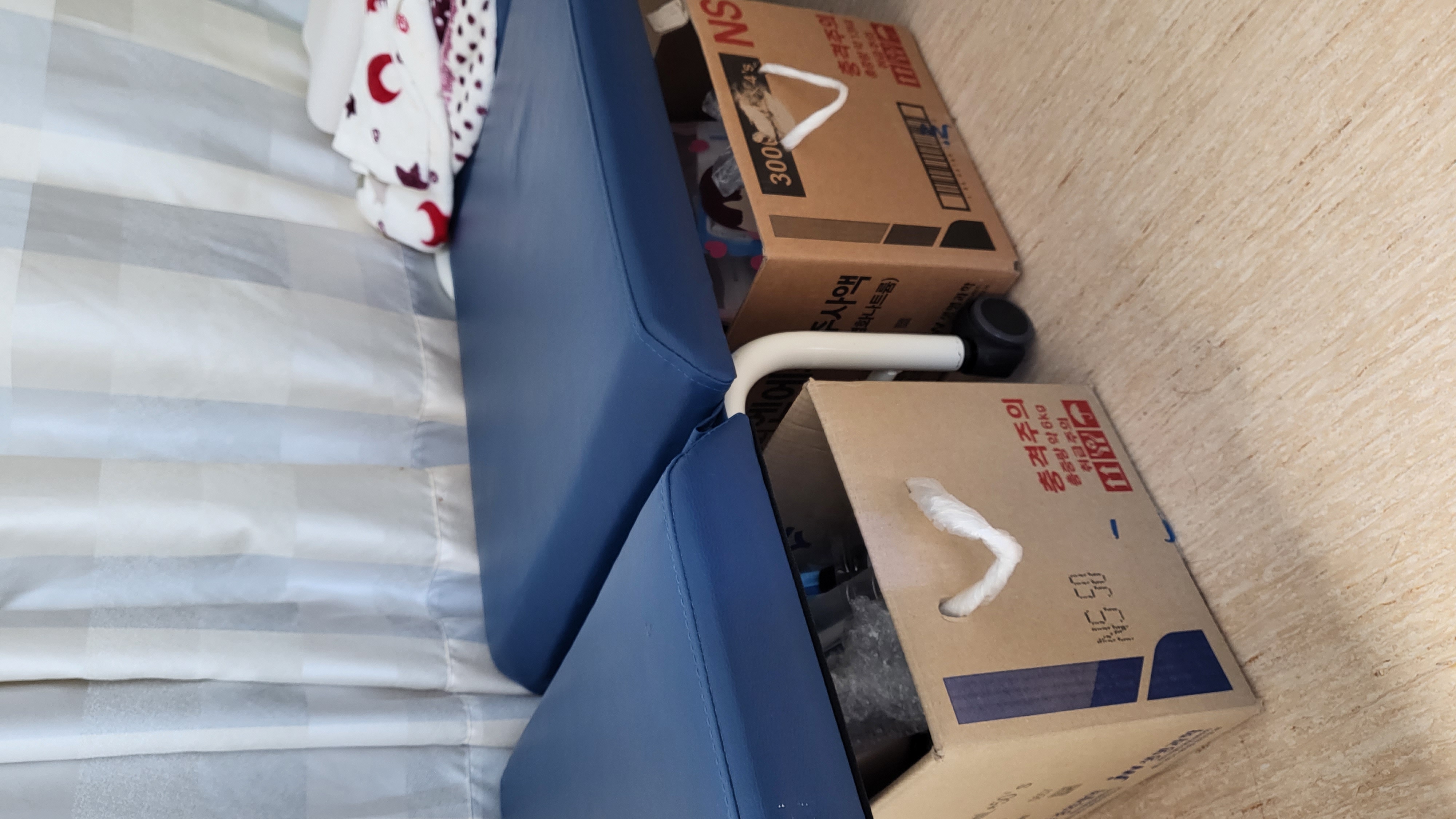 병원엔 빈약상자가 매일 나옵니다 위에 덮개를 잘라 손잡이를 만들고 보호자 침대밑에 넣고 물건들을 넣으면 정~~말 편리합니다ㆍ손잡이는 1회용 팩을 꼬아 만들었구요ㆍ베지밀 선물상자 손잡이가 있으면 더욱 좋습니다ㆍ가정에서도 활용해도 좋지않나 싶어요