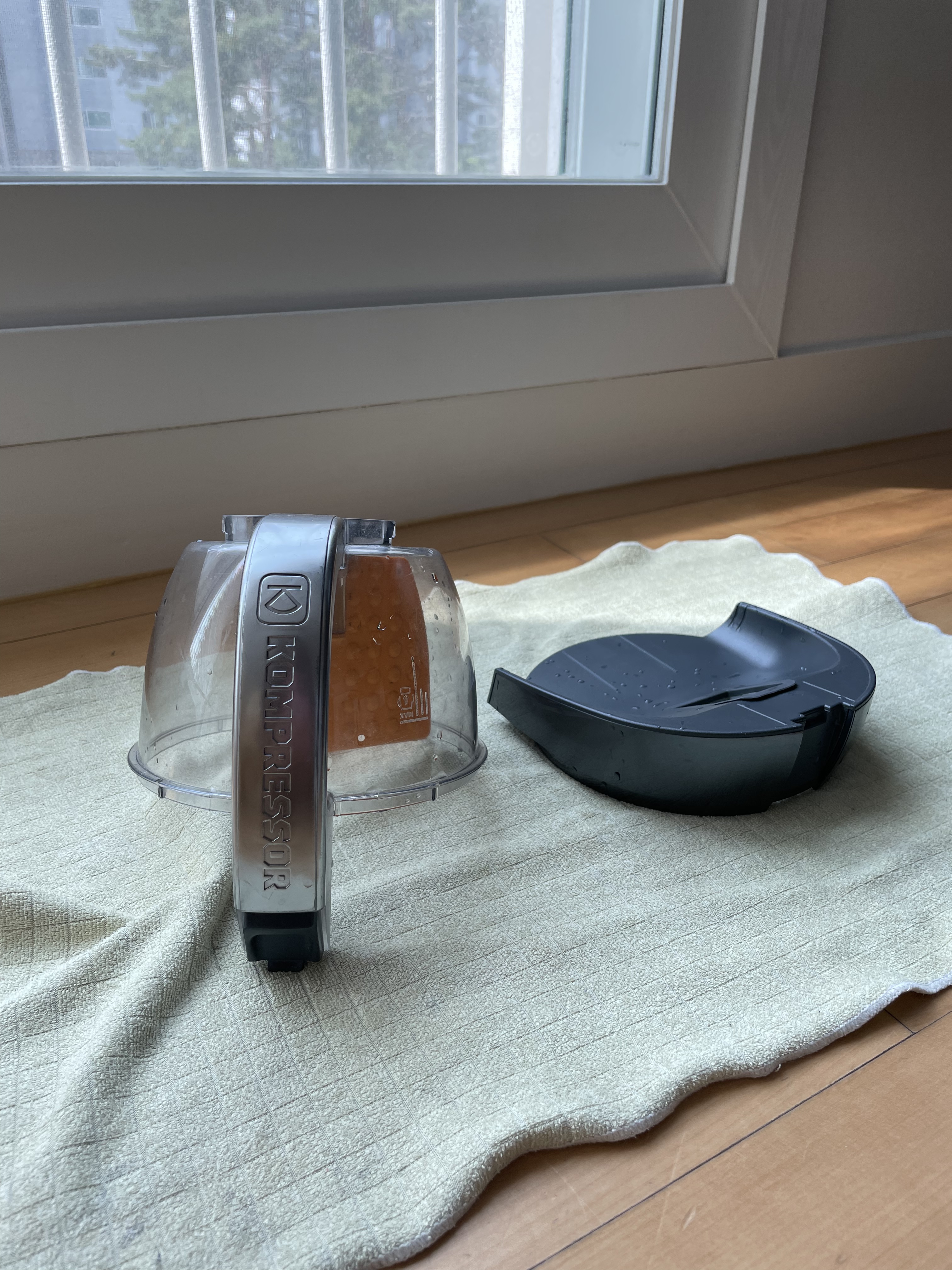 청소기 먼지통은 그때그때 비우지 않으면 찌든때가 끼어 세제를 쓰고 힘주어 박박 닦아야해요. 그래서 청소가 끝나면 그때그때 비우고 물로 닦아 햇빛에 말려줍니다.
