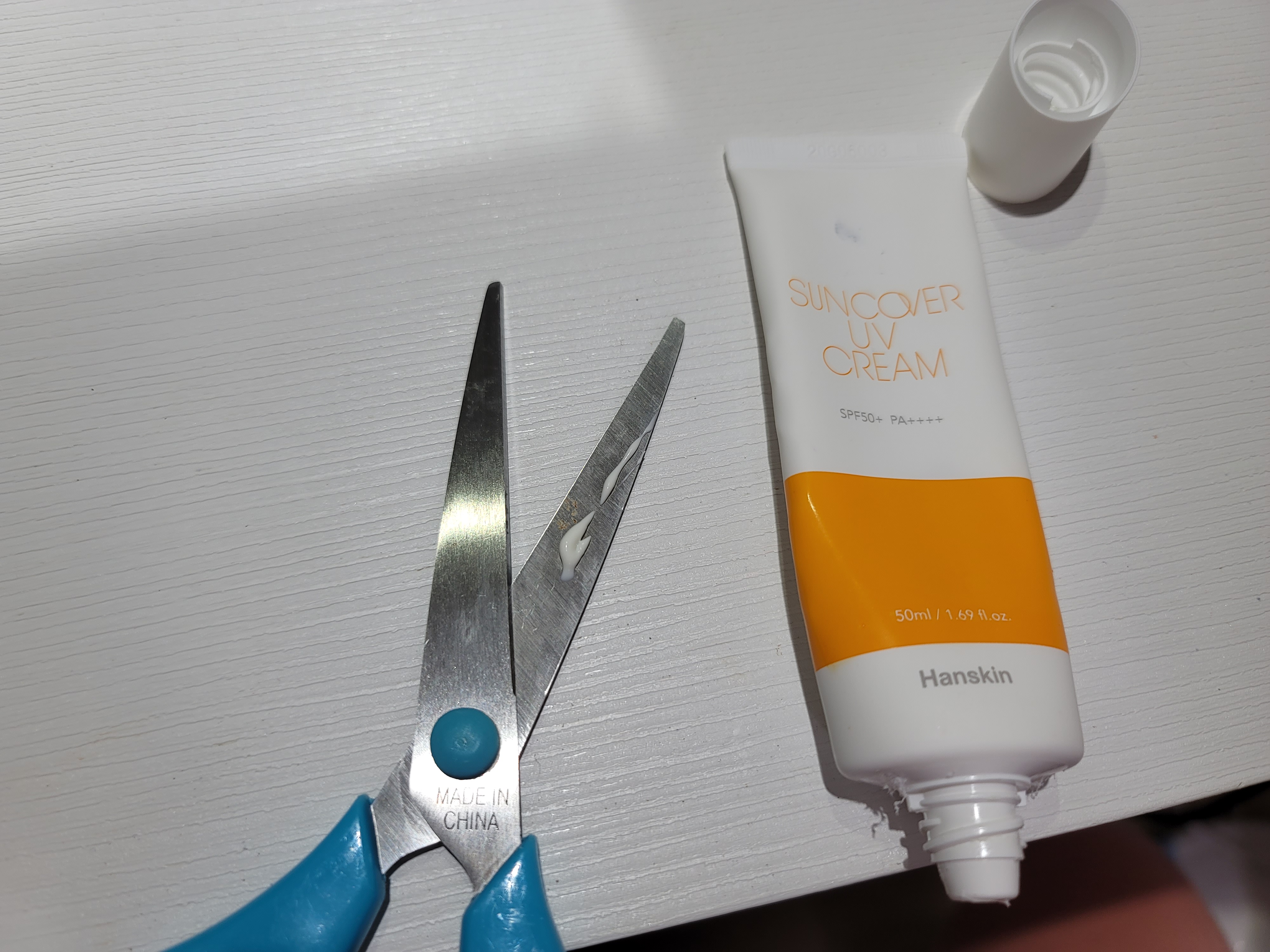 가위끈적이는 부분에 선크림 조금발라서 천으로 문질해주면