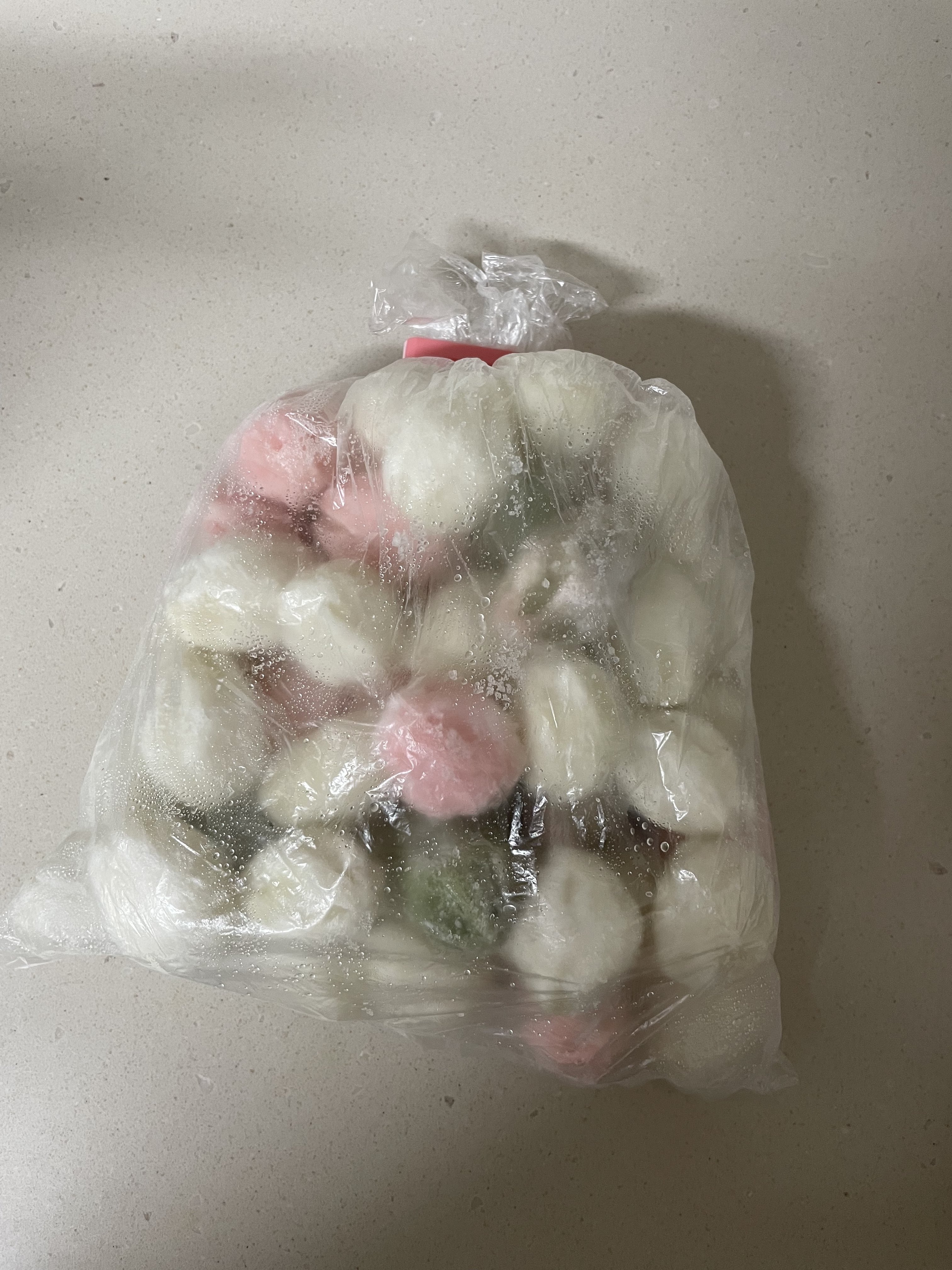 비닐에 넣어(비닐은 새비닐이 아니라 재사용한거에요!) 공간이 넉넉하게 윗 부분을 묶어준 후 살짝 얼려주세요.