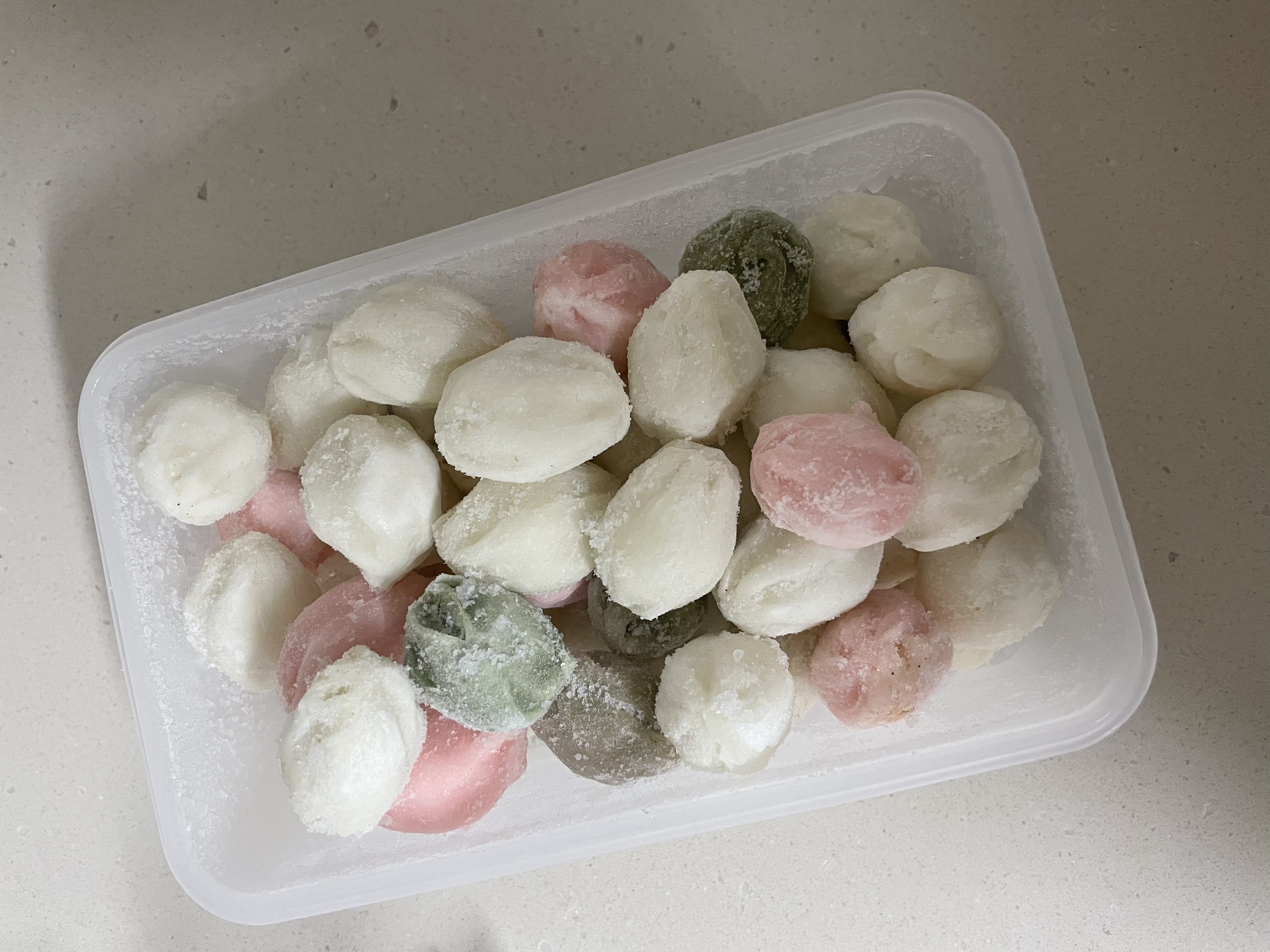 그 다음 봉지를 살살쳐서 떡들을 분리시킨 다음 통에 넣어주면 서로 붙지 않게 잘 보관할 수 있어요^^ 먹을때는 떡을 찌지 않아도 밥솥에 넣어두면 말캉말캉해져요~!