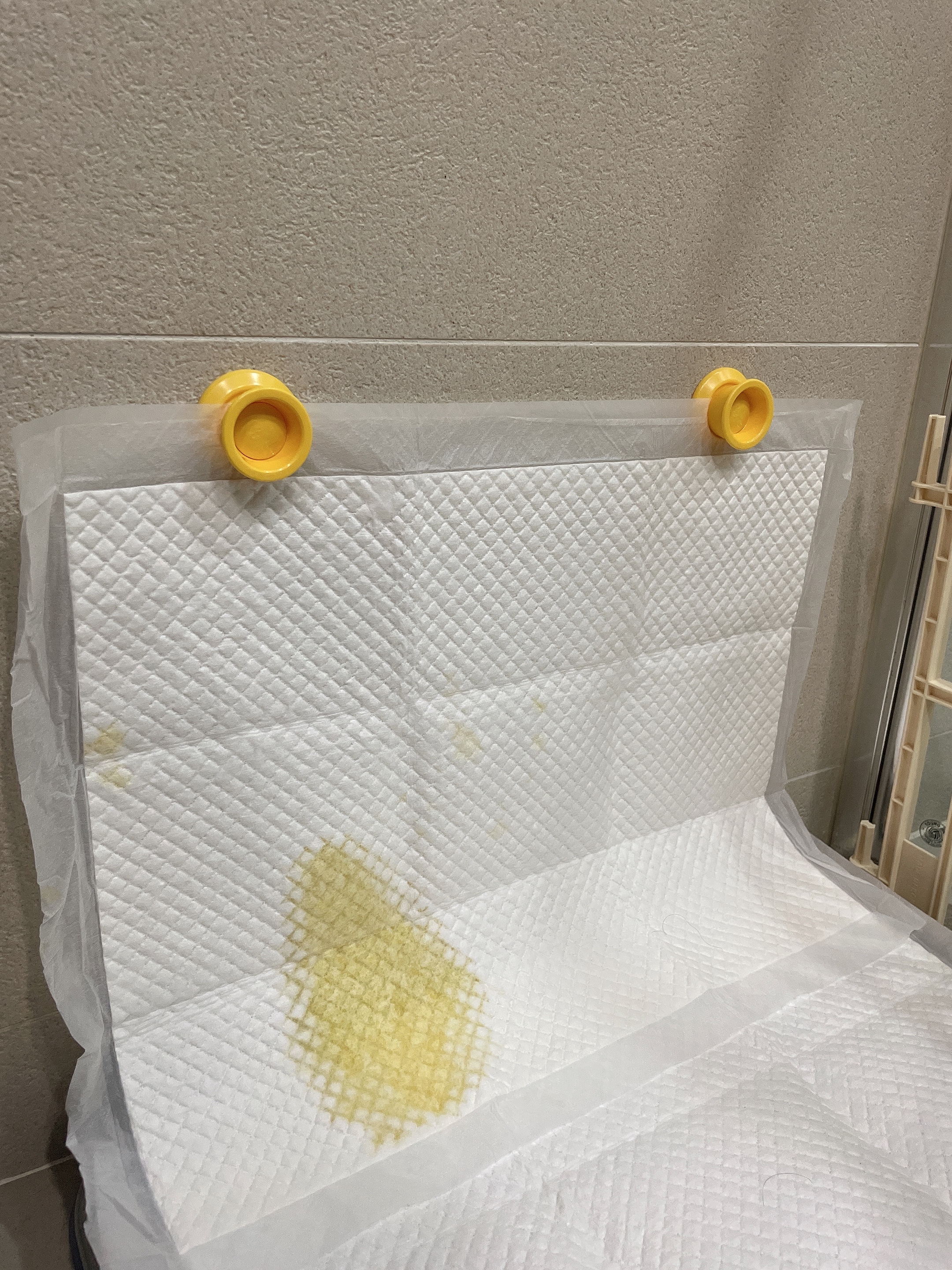 패드 사용을 안하려고 노력중인데 패드를 안놓으면 배변을데 여기저기 하려고 하네요. 수컷 갈아지라 다리를 들고 쉬를 하는데 배변패드 홀더 라는 제품을 이용해서 벽면에 패드를 고정시켜줬어요. 강아지가 매우 좋아하고 청소하는 저도 좋아요. 그나저나 패드 사용량을 줄이는 방법을 간구해봐야겠어요 ㅠ