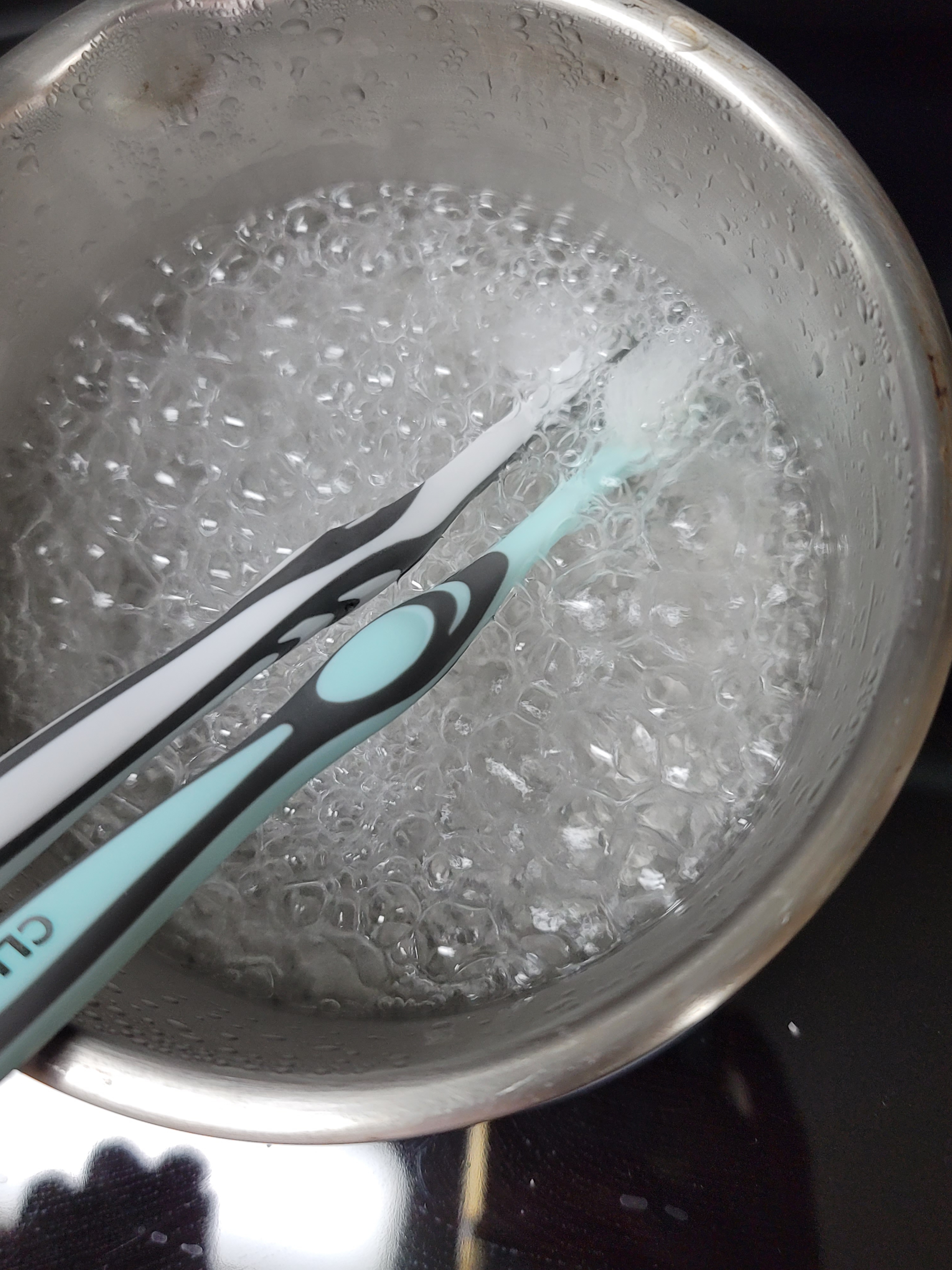 벌어진칫솔을 5초간만 담궜다빼주세요
