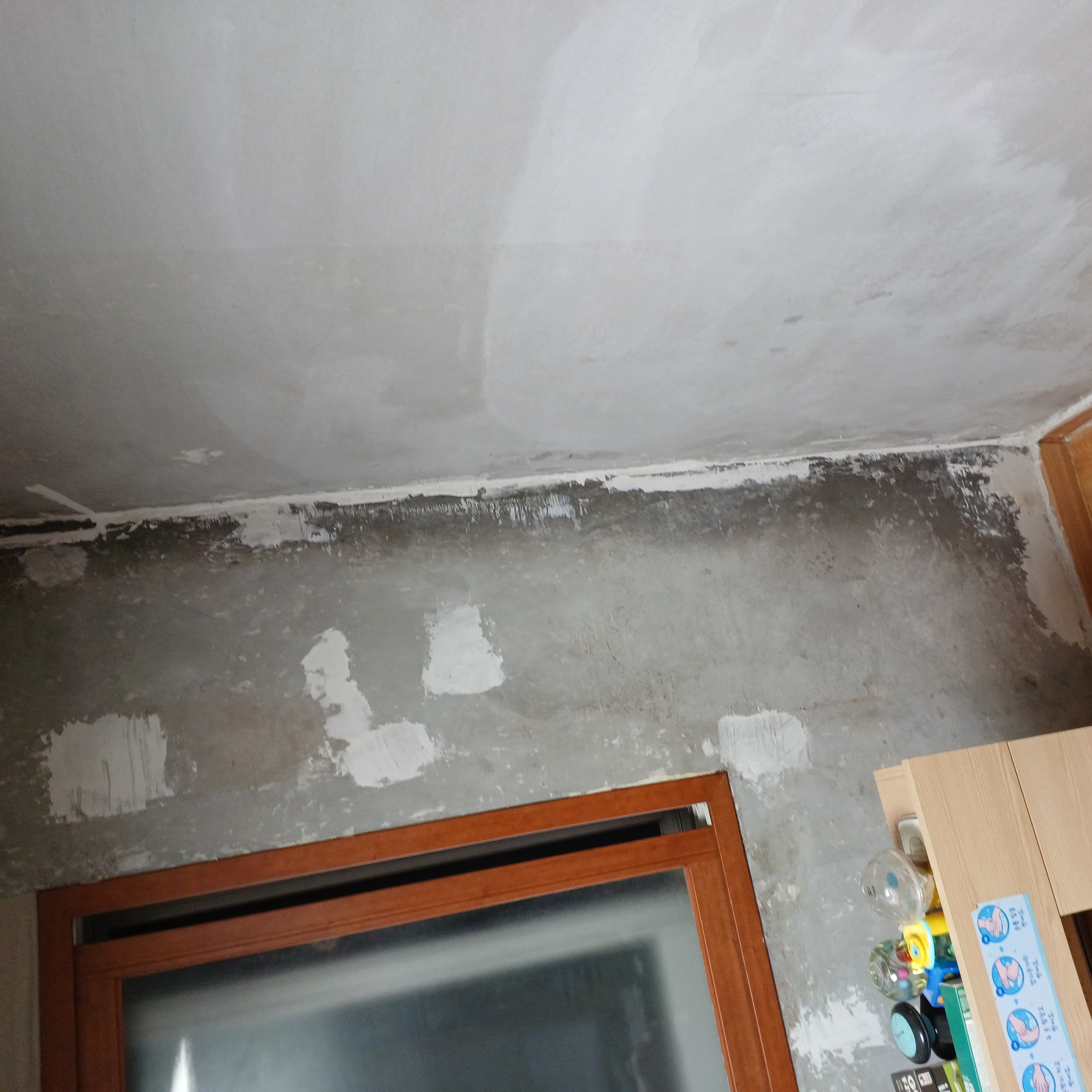 창가 벽면이 곰팡이가 심했고 실금이 많아서 모두 홈빠데로 메꿈
