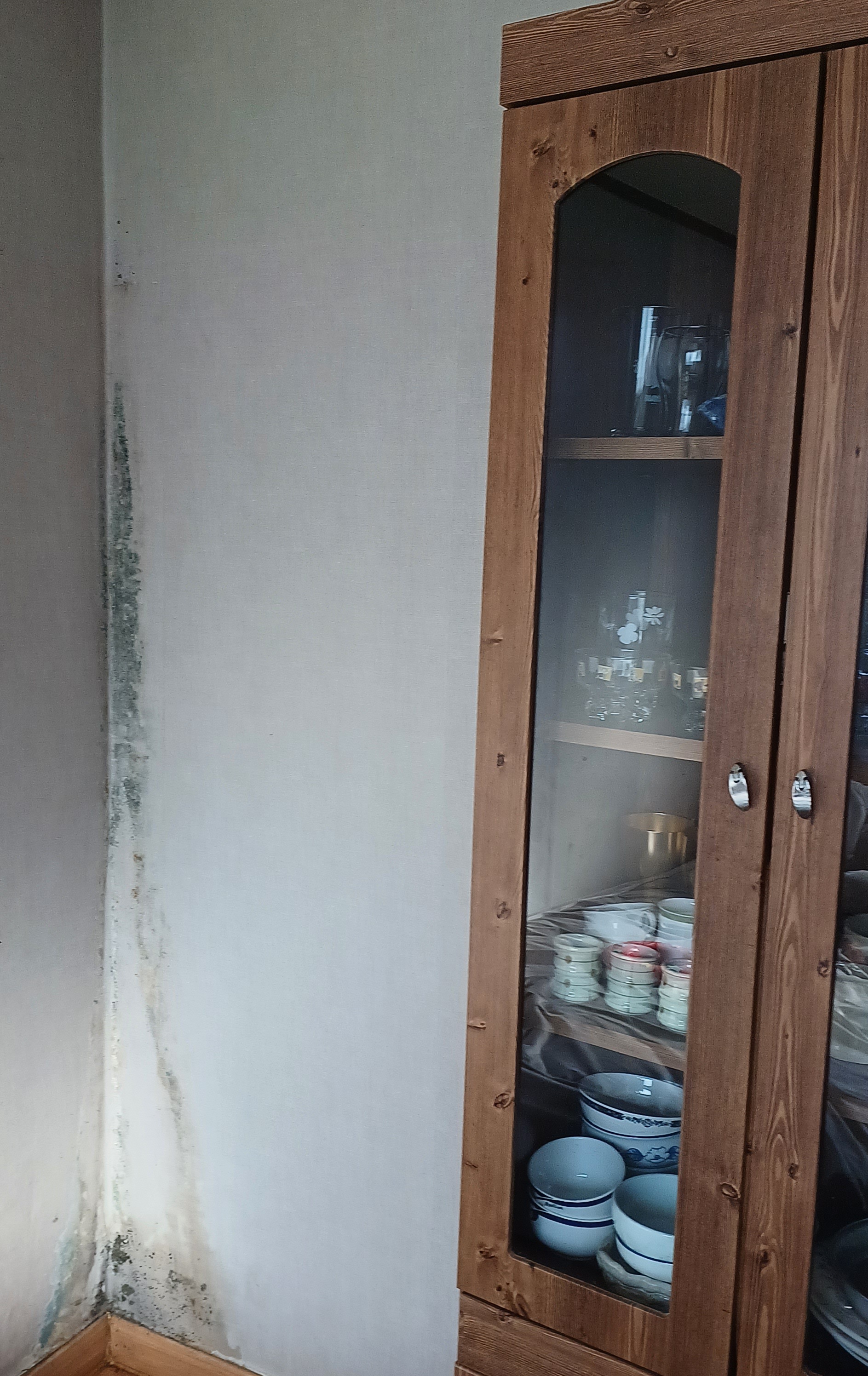 곰팡이 생긴 책장 뒤 모서리
