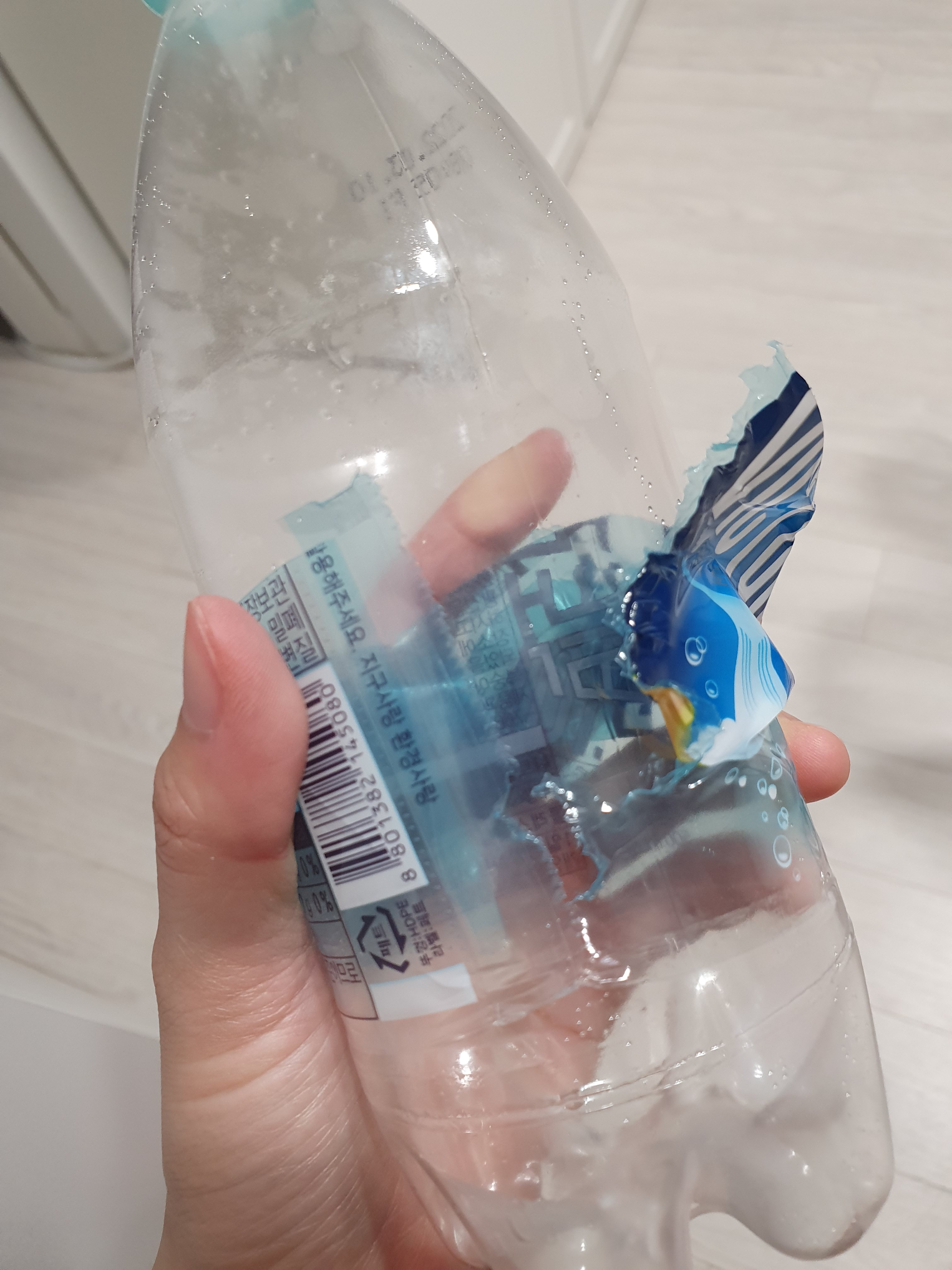 페트병 라벨은 벗겨서 버려야 제대로 재활용 되요~!
