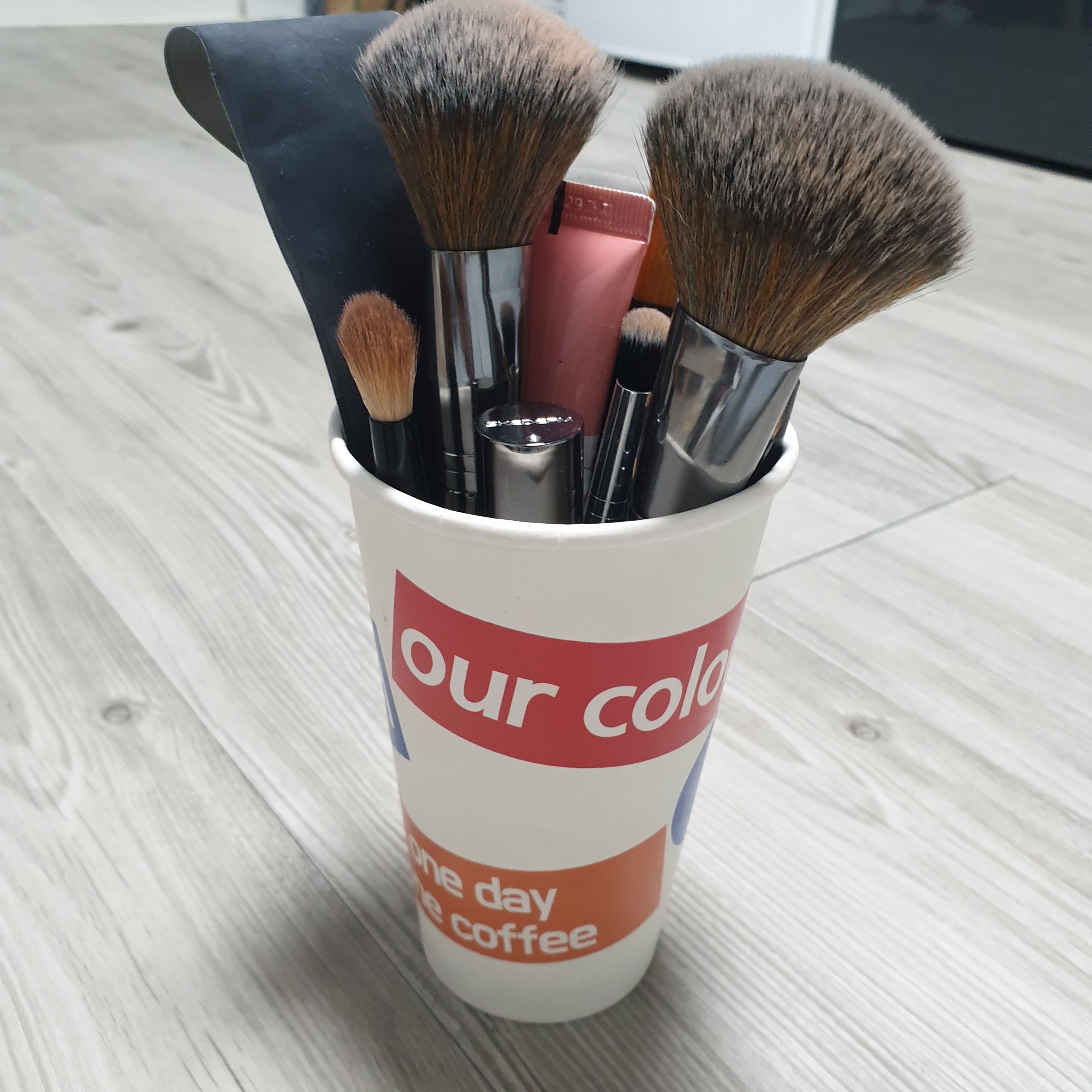 카페에서 받은 테이크아웃잔을 버리지 않고 브러쉬 보관용으로 좋아요