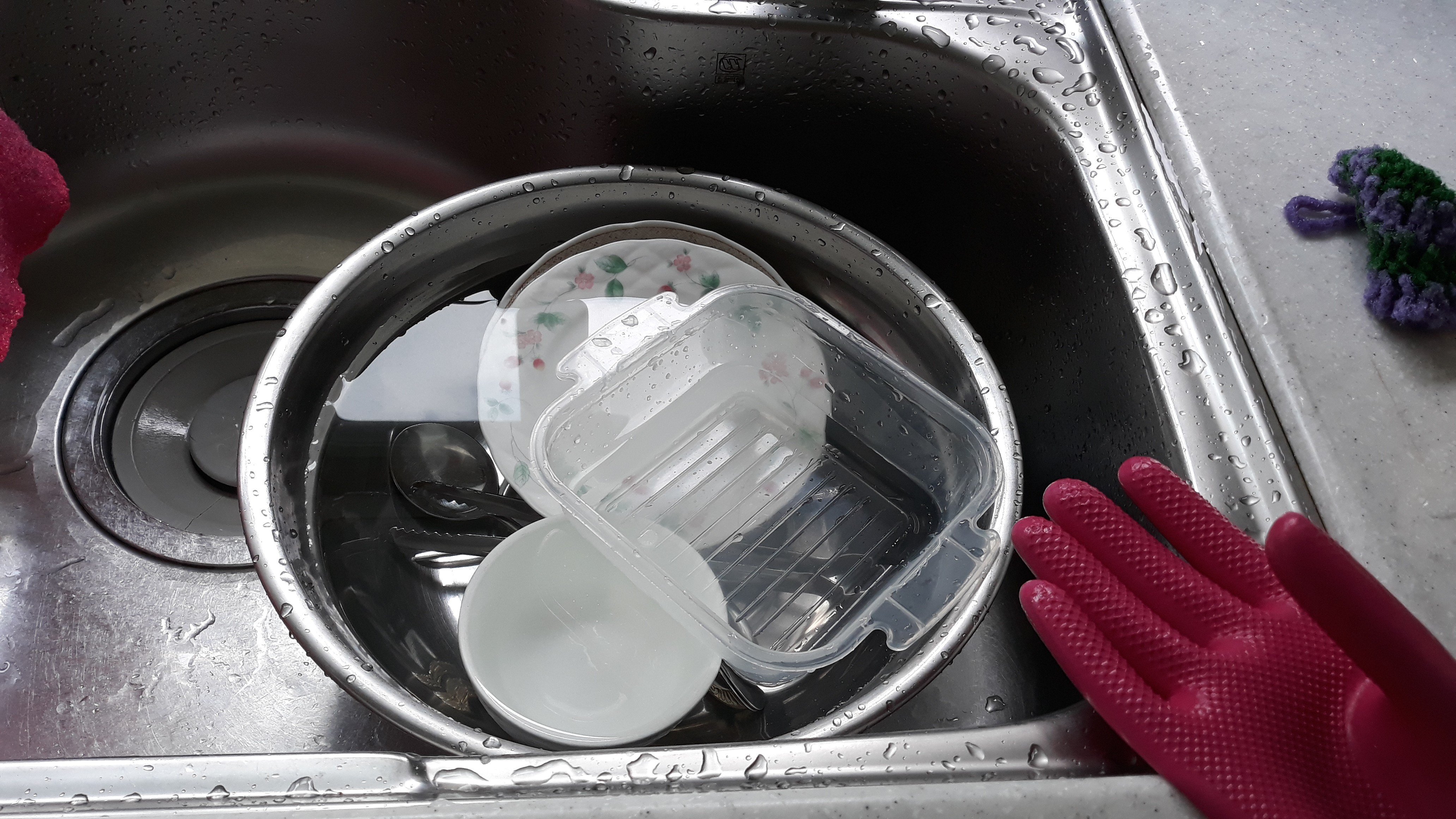 우리집 수도세도 아끼고 환경을 지키기 위해 설거지 할때 물을 적게 써보려고 노력중이예요~ 설거지통이 없어서 스테인리스 볼에 식기들 넣고 설거지 해보았어요 그랬더니 평소보다 물을 적게 쓴것같아서 뿌듯하네요~