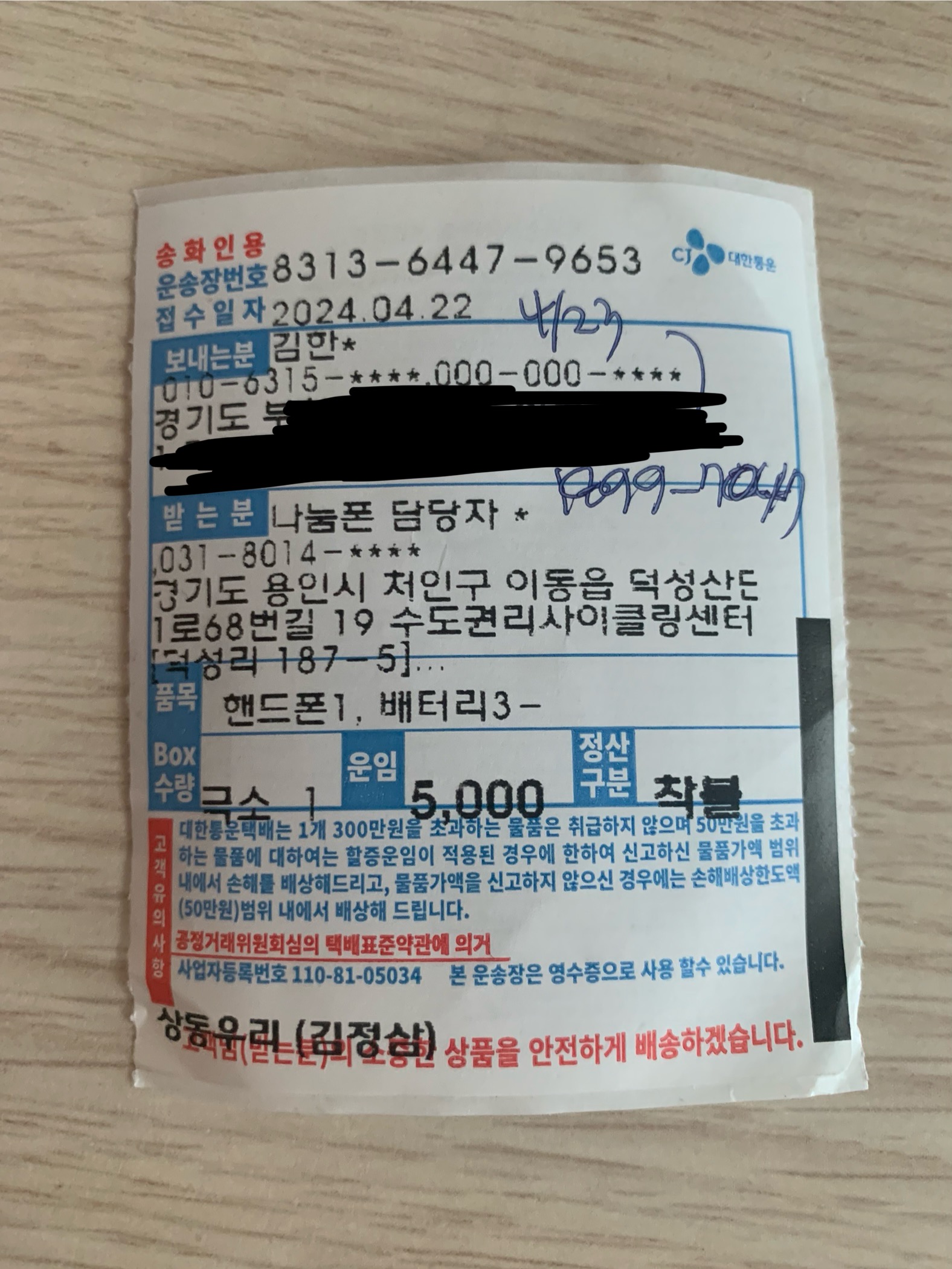 나눔폰에서 입고 확인 안되서 송장도 첨부합니다.