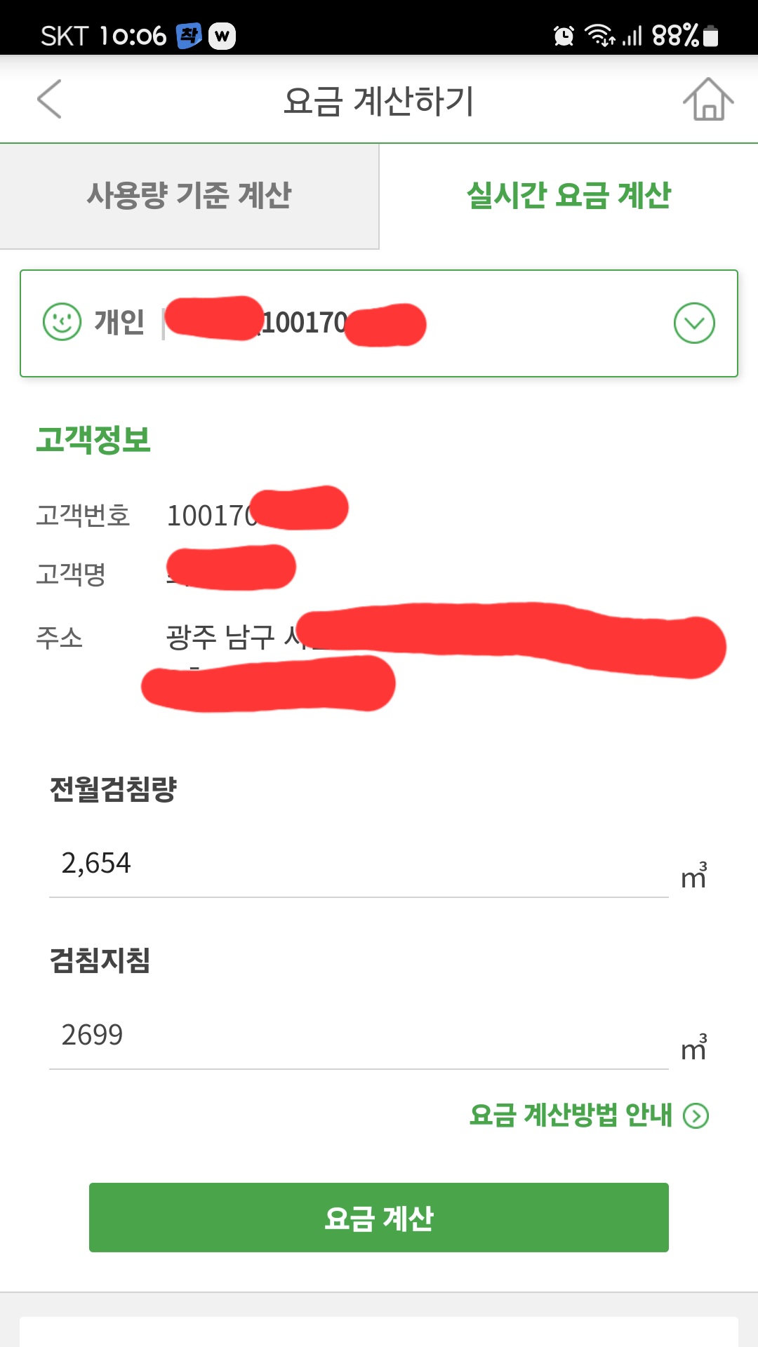 실시간도시가스요금계산