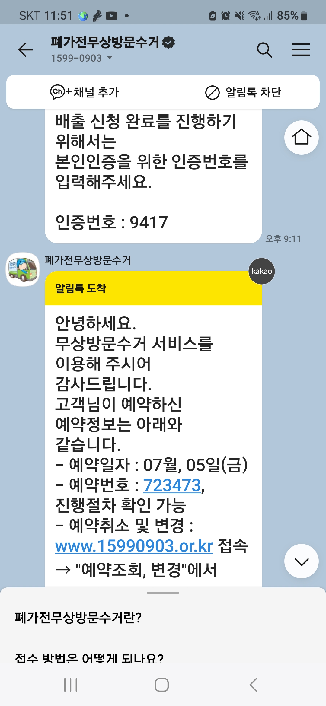 전자레인지와 선풍기를 수거 요청 드렸어요. 감사합니다.