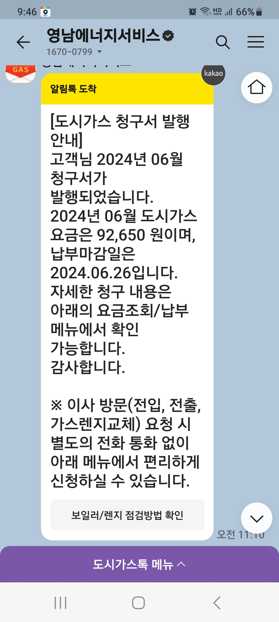 모바일로 도시가스요금 영수증 받는중