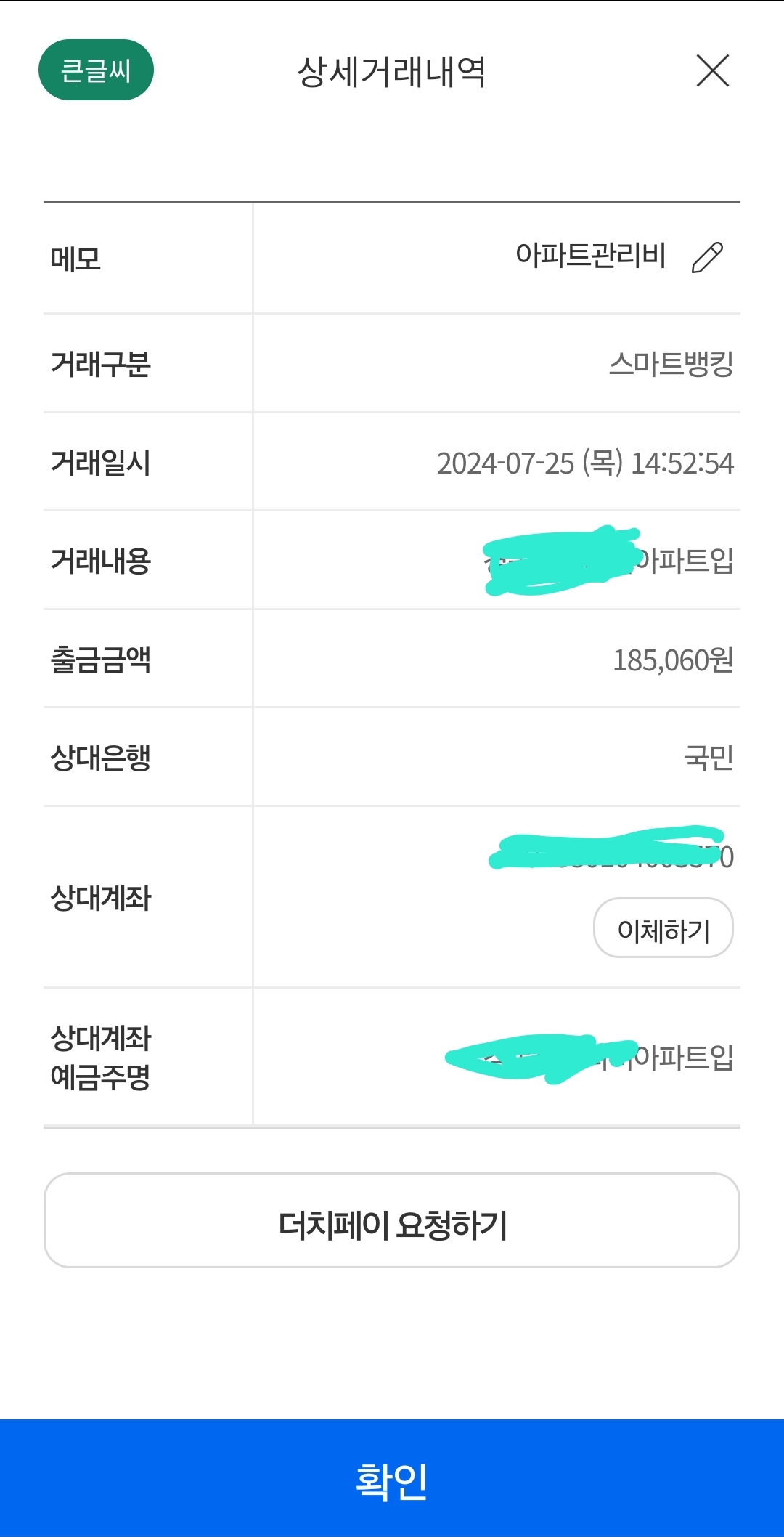 모바일로 관리비 냈어요