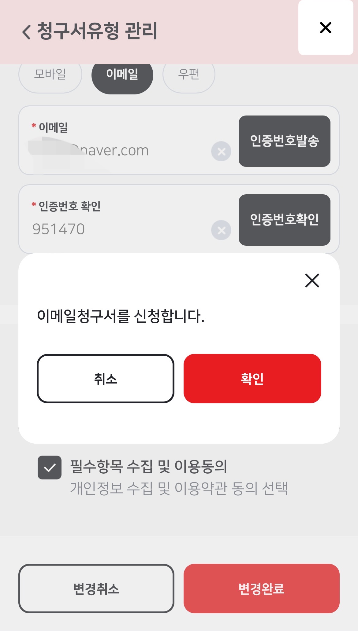 모바일 청구서로 전환했어요