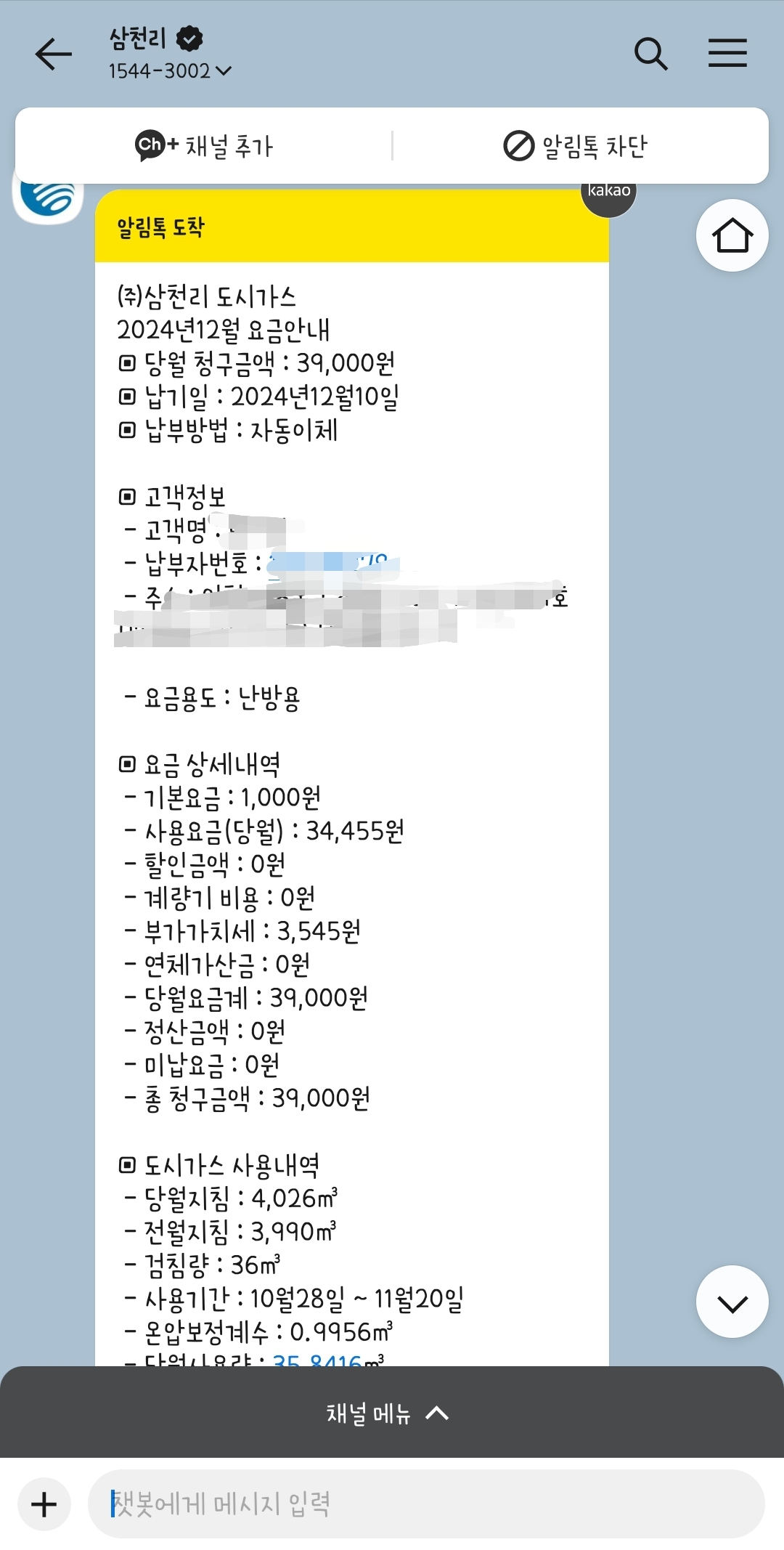 도시가스청구서