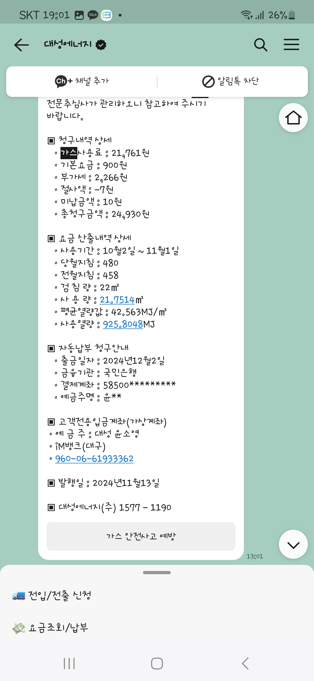 요즘은 다들 가스요금 전기요금 월세명세서 모바일로 받으시잖아요^^
