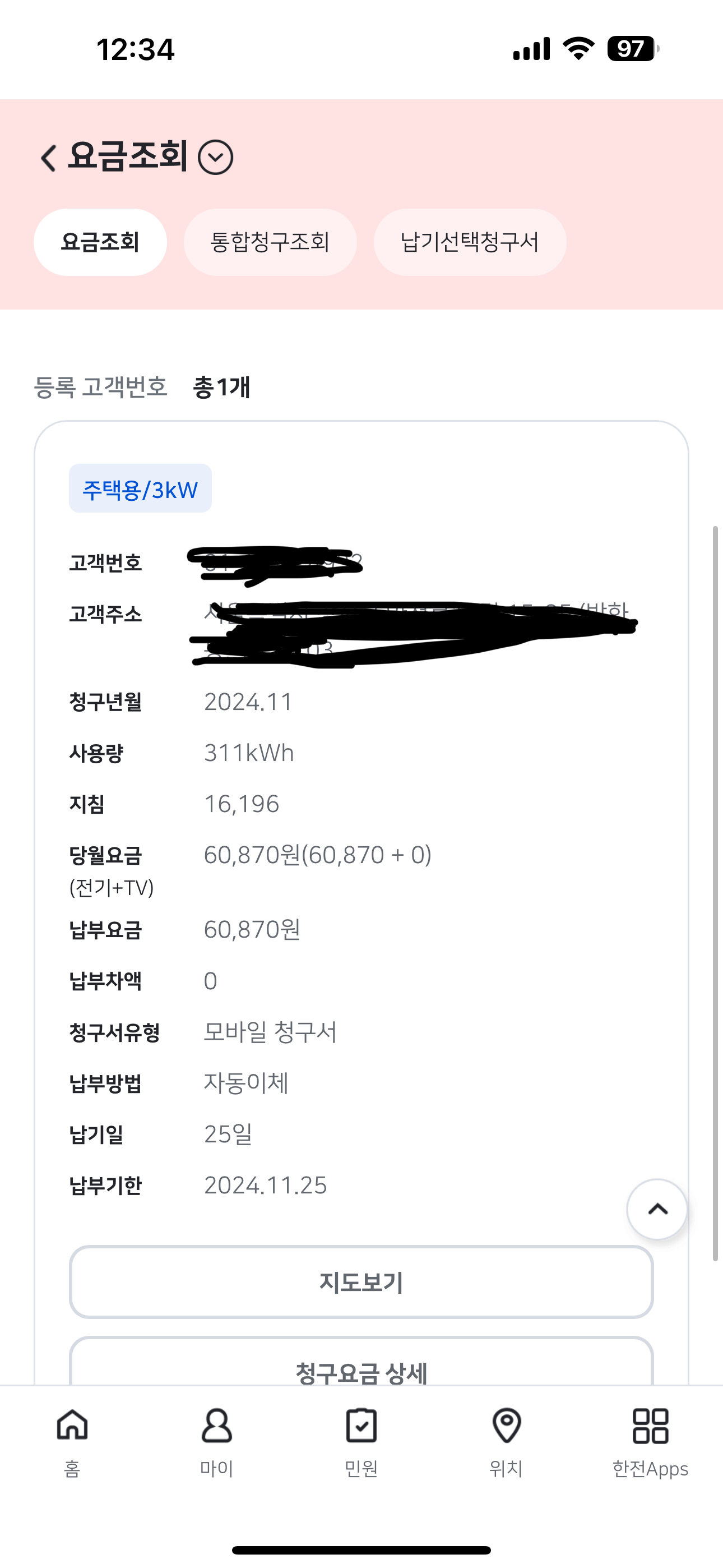 전 어플로 고지서 봐요. 수도, 전기는 카카오페이 톡으로도 고지서가 오는…