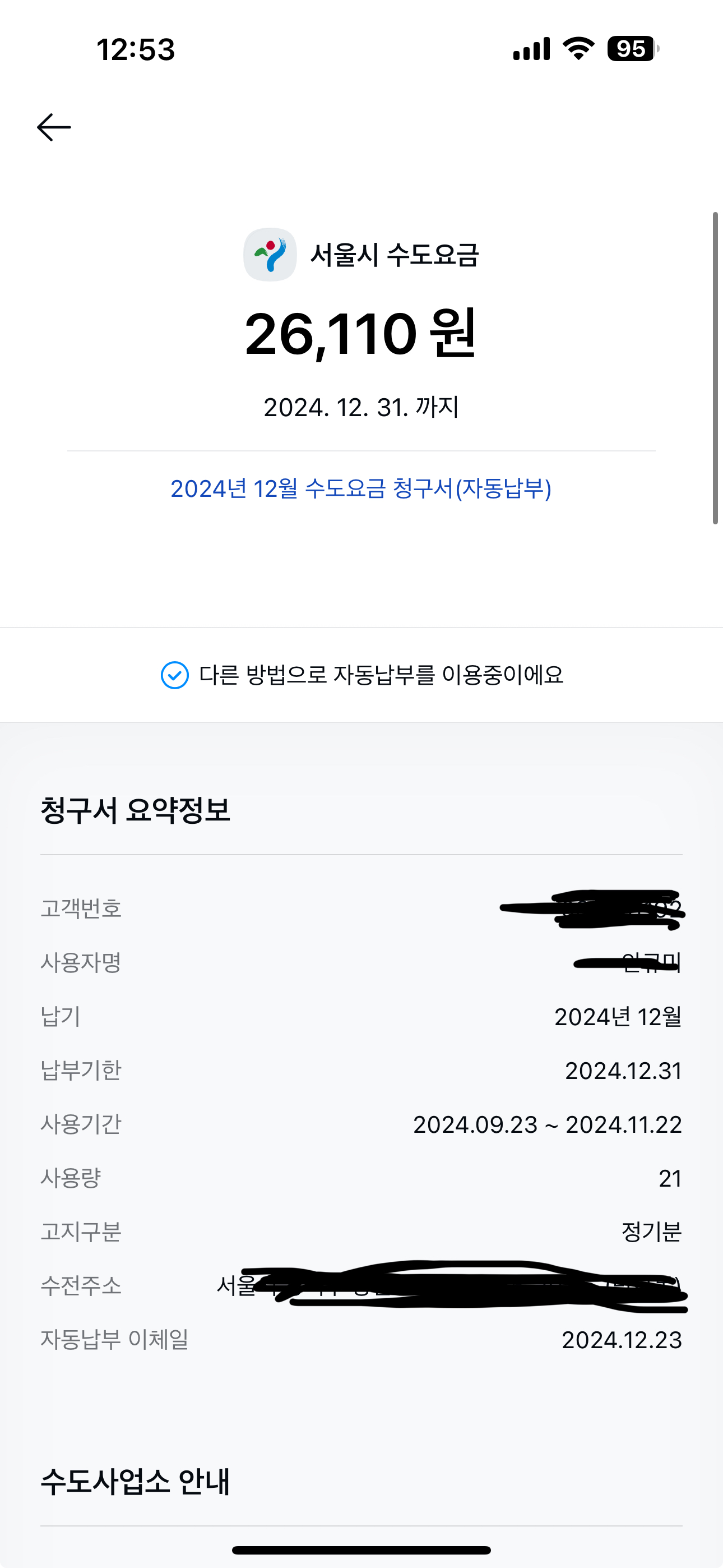 수도는 자가검침 및 모바일고지서 받으면 600원 200원 감면(수도 자가검침은 오늘 신청해서 내년 2월 부터 감면 받을듯하네요)