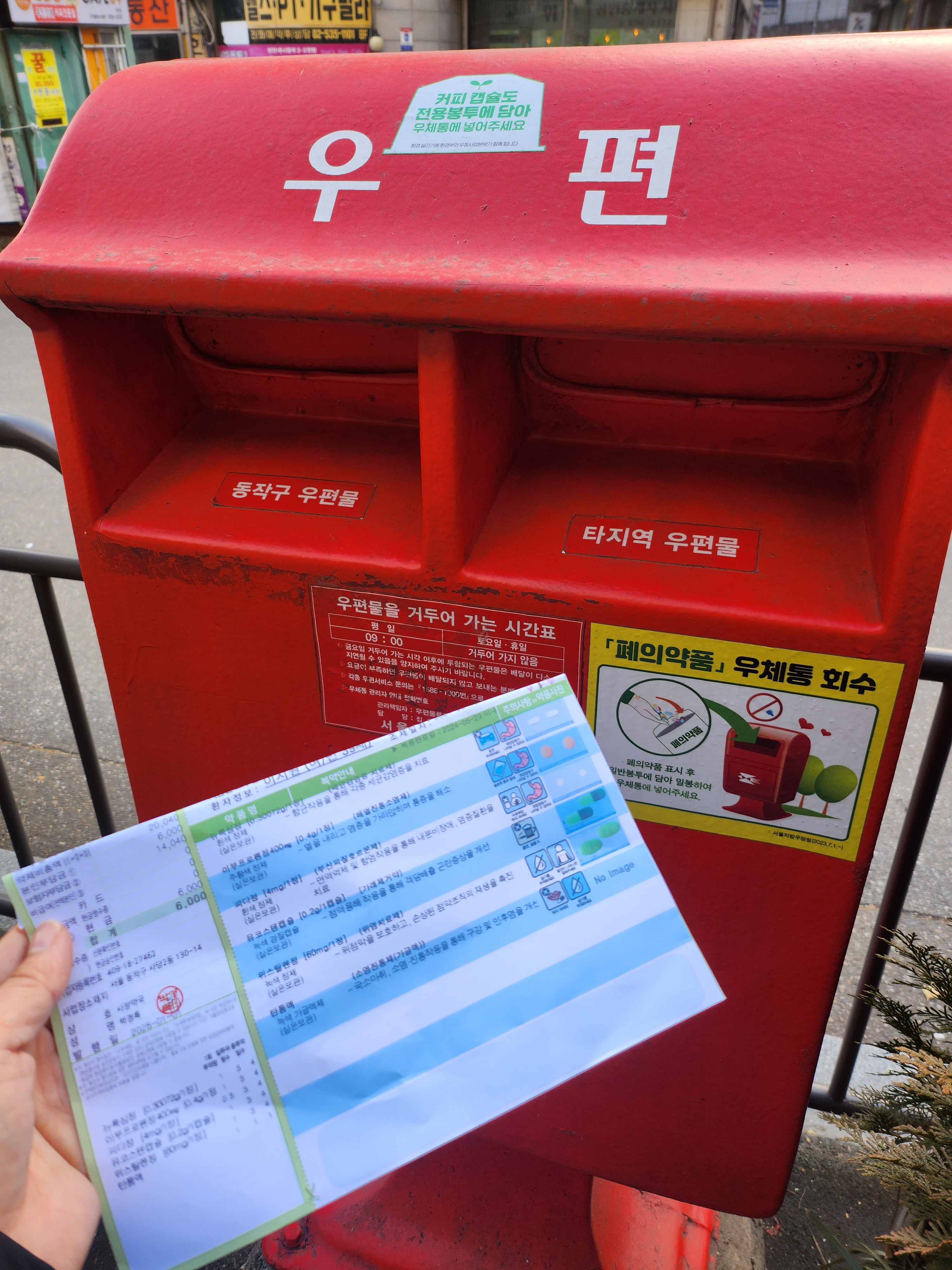 오래된 의약품 우편함에 넣기