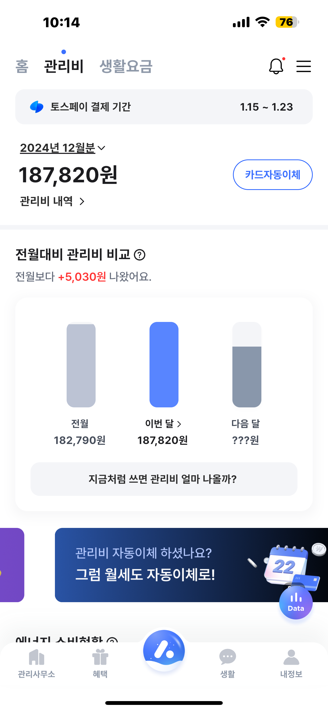 모바일고지서관리비입니다.