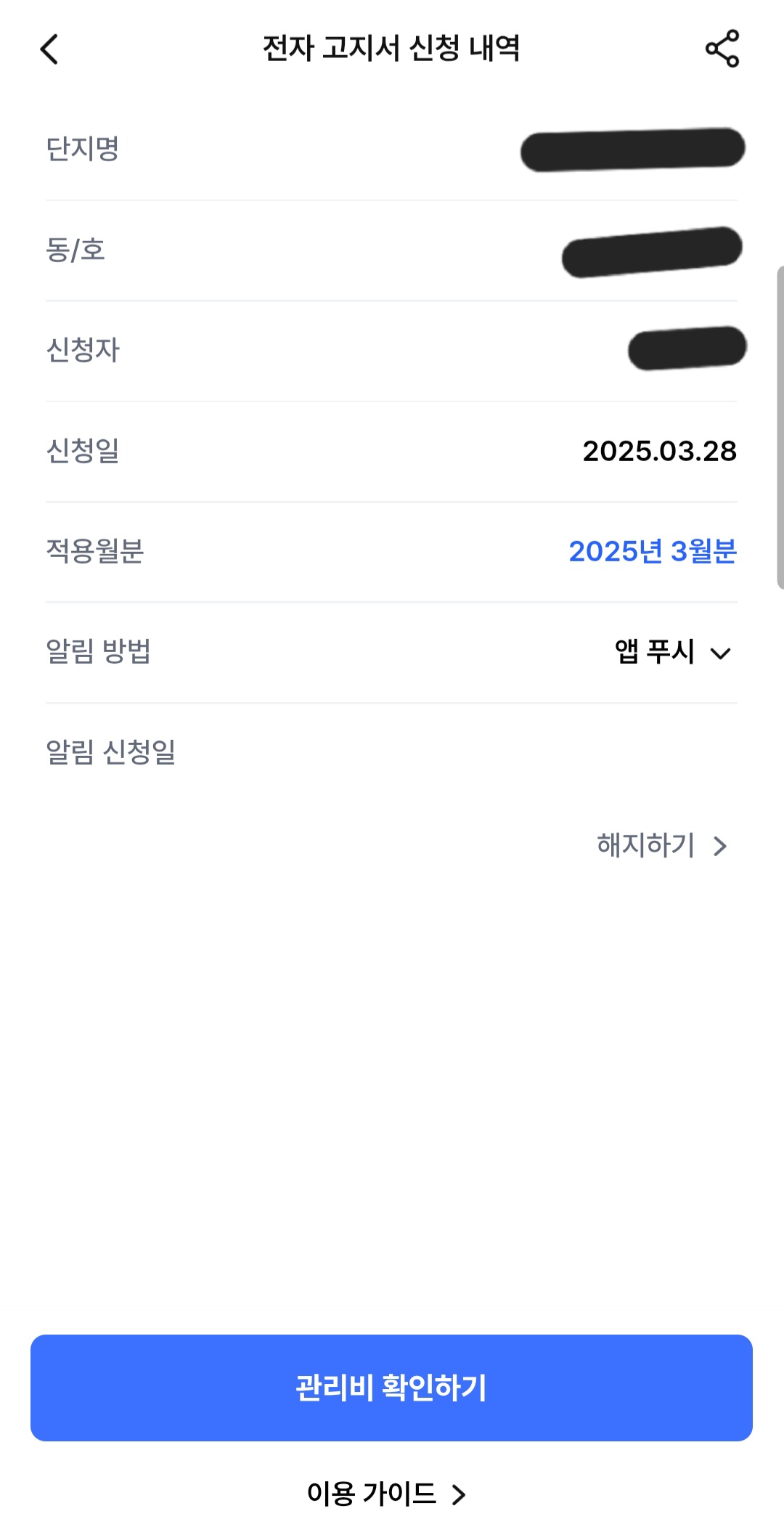 관리비 모바일 청구서 전환 신청했어요