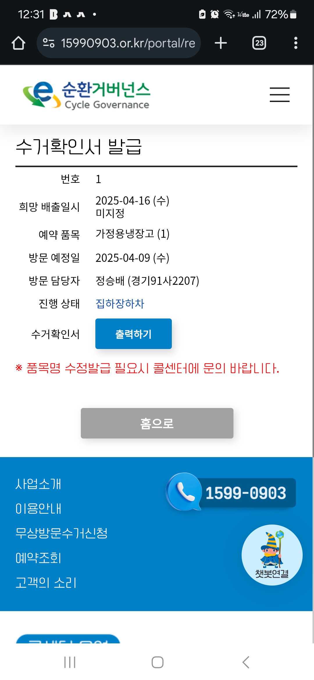 냉장고 폐가전신청