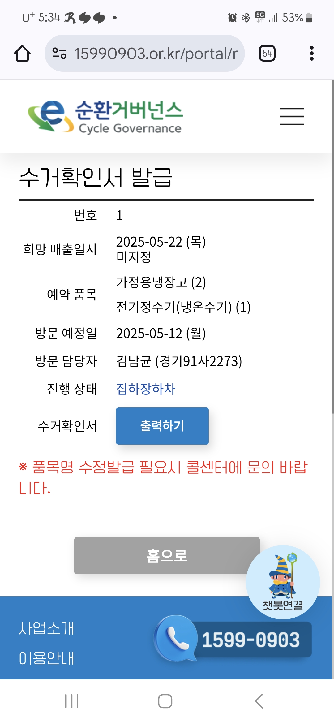 냉장고, 정수기 수거완료