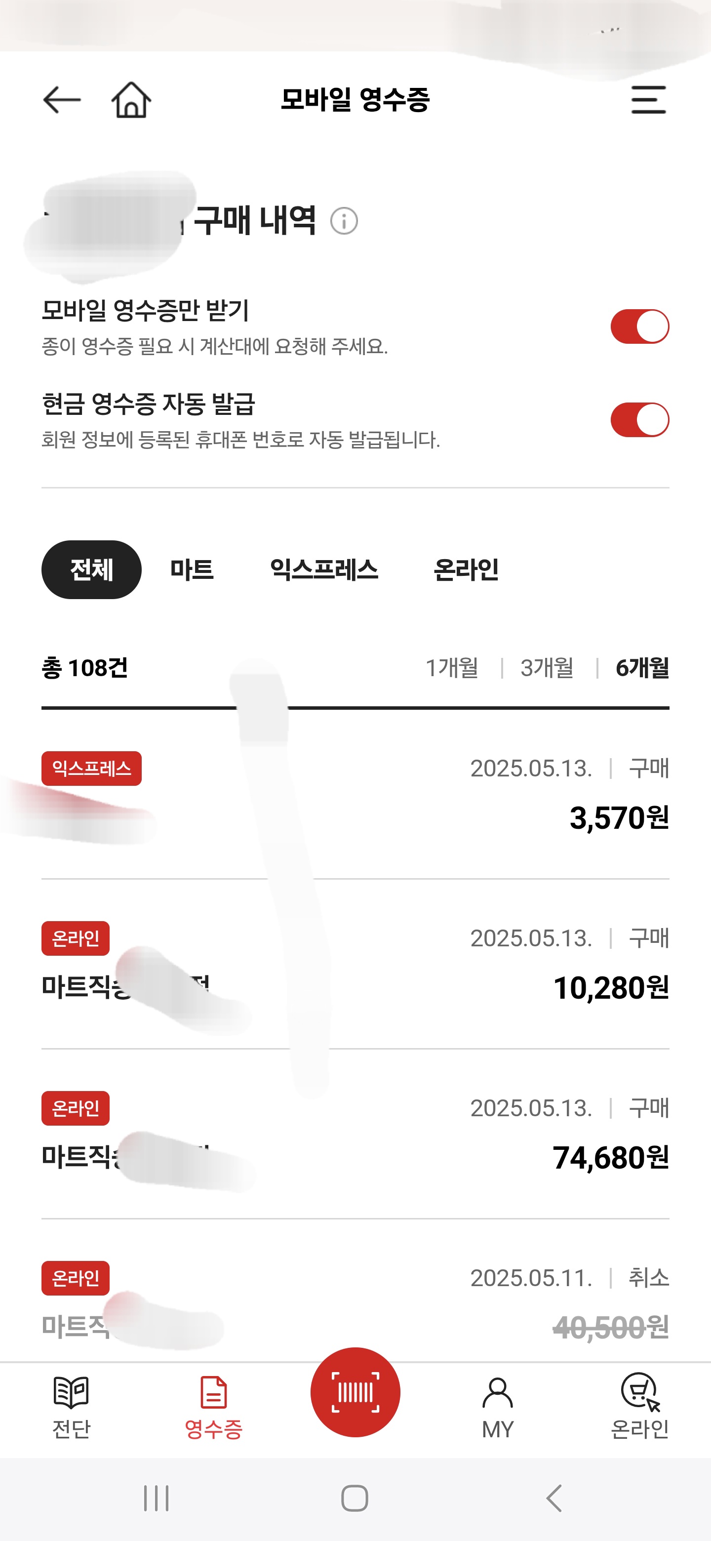 마트 이용시 모바일 영수증 이용해보세요