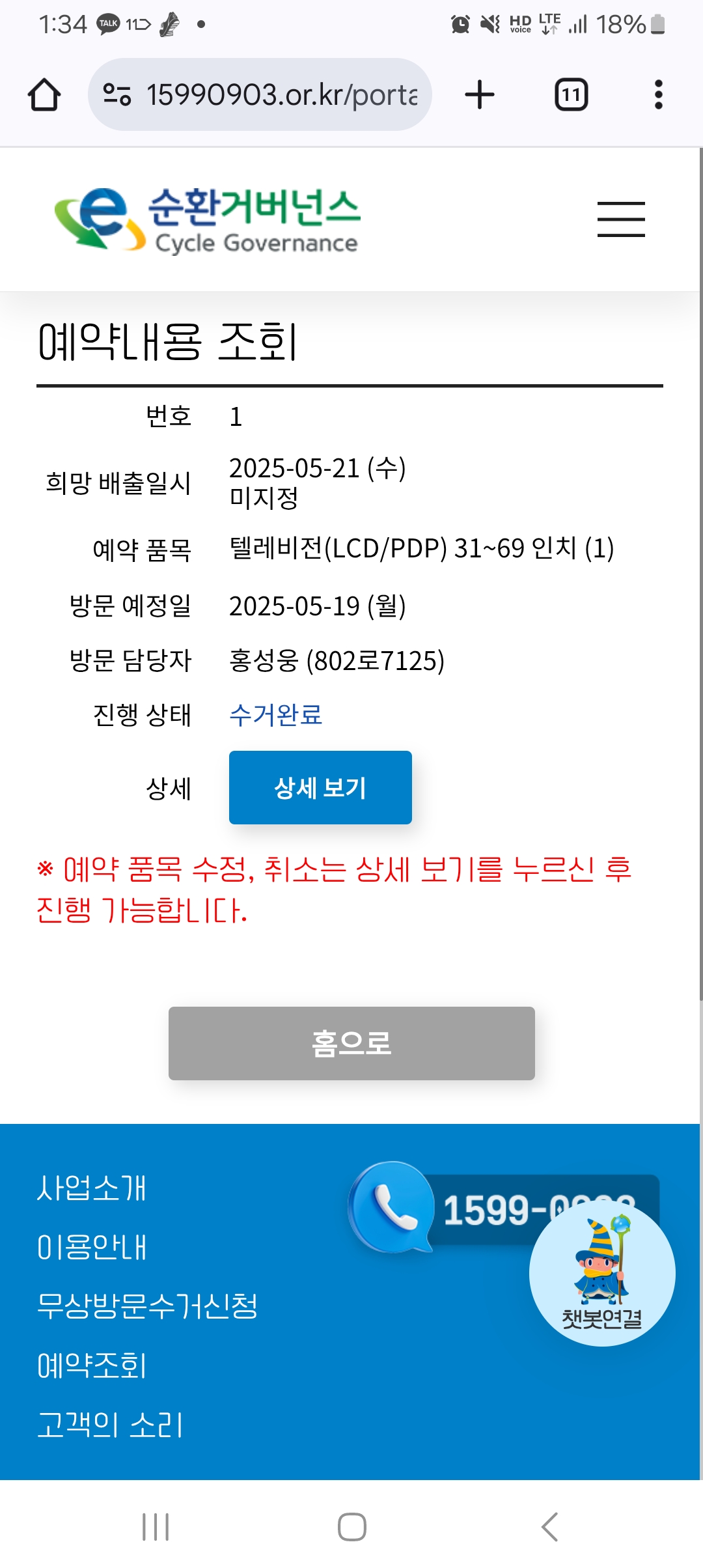 가전제품 무상수거 완료했습니다.
