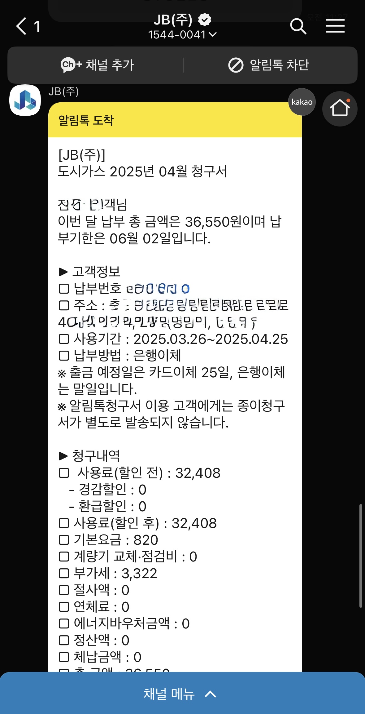 도시가스 모바일 청구서