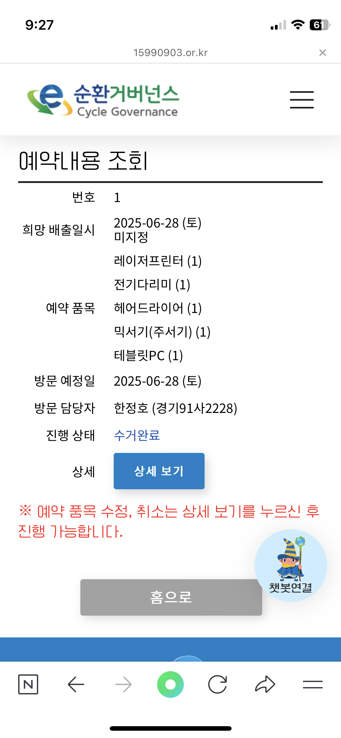 폐가전무료수거 완료