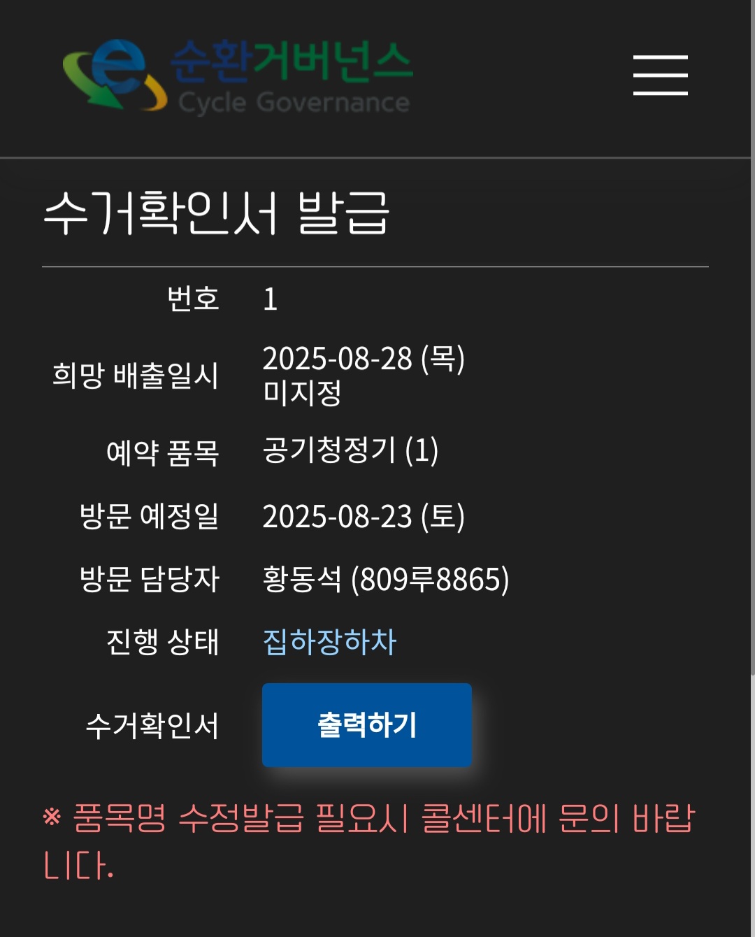 공기청정기 배출 완료