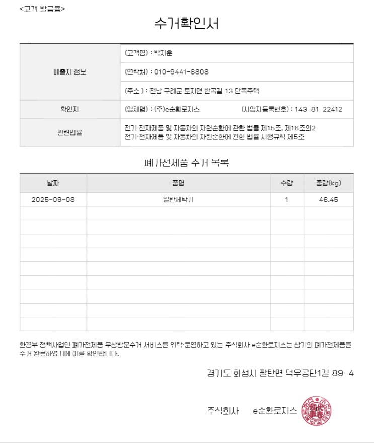 폐전자제품 배출 인증