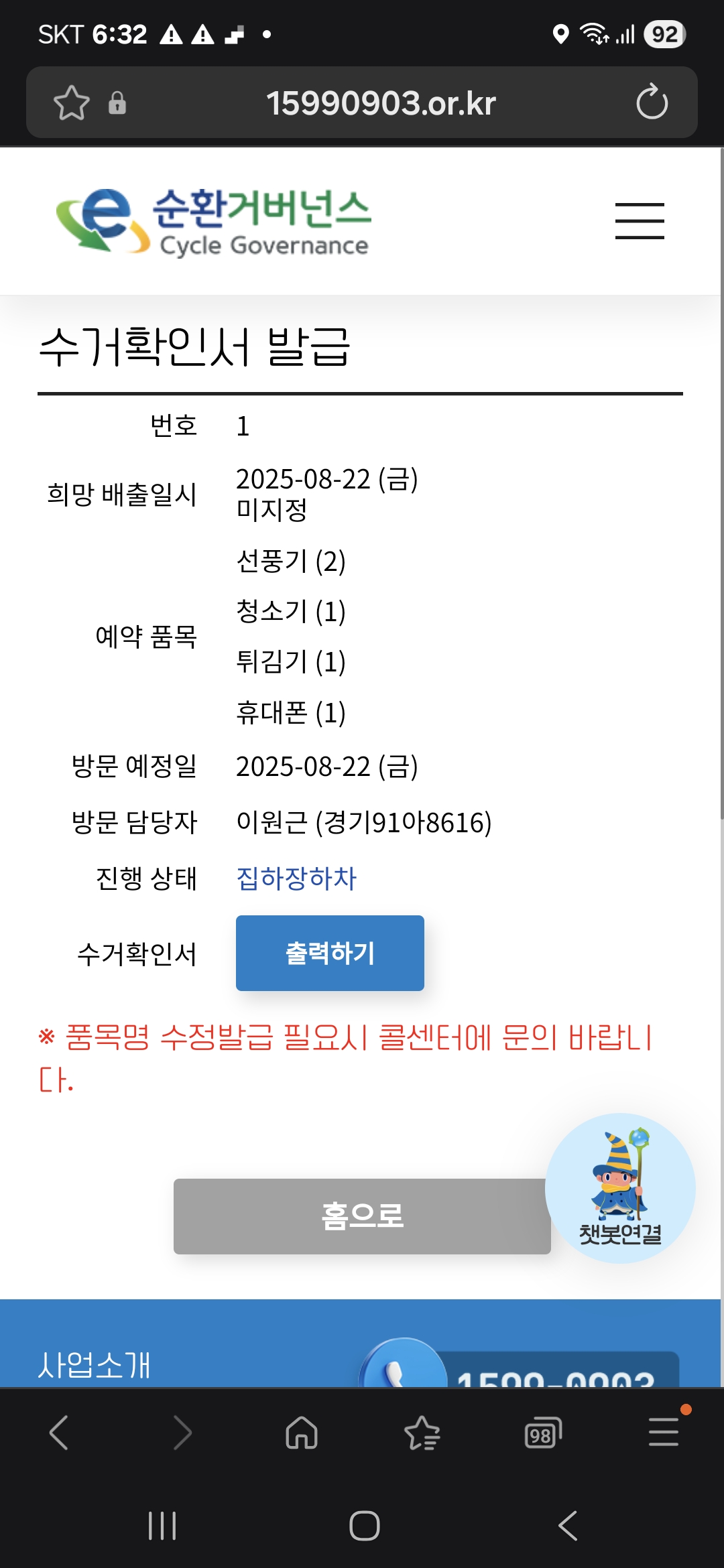 예약해놓으면 집앞에 와서 가져가니 너무 편하네요~