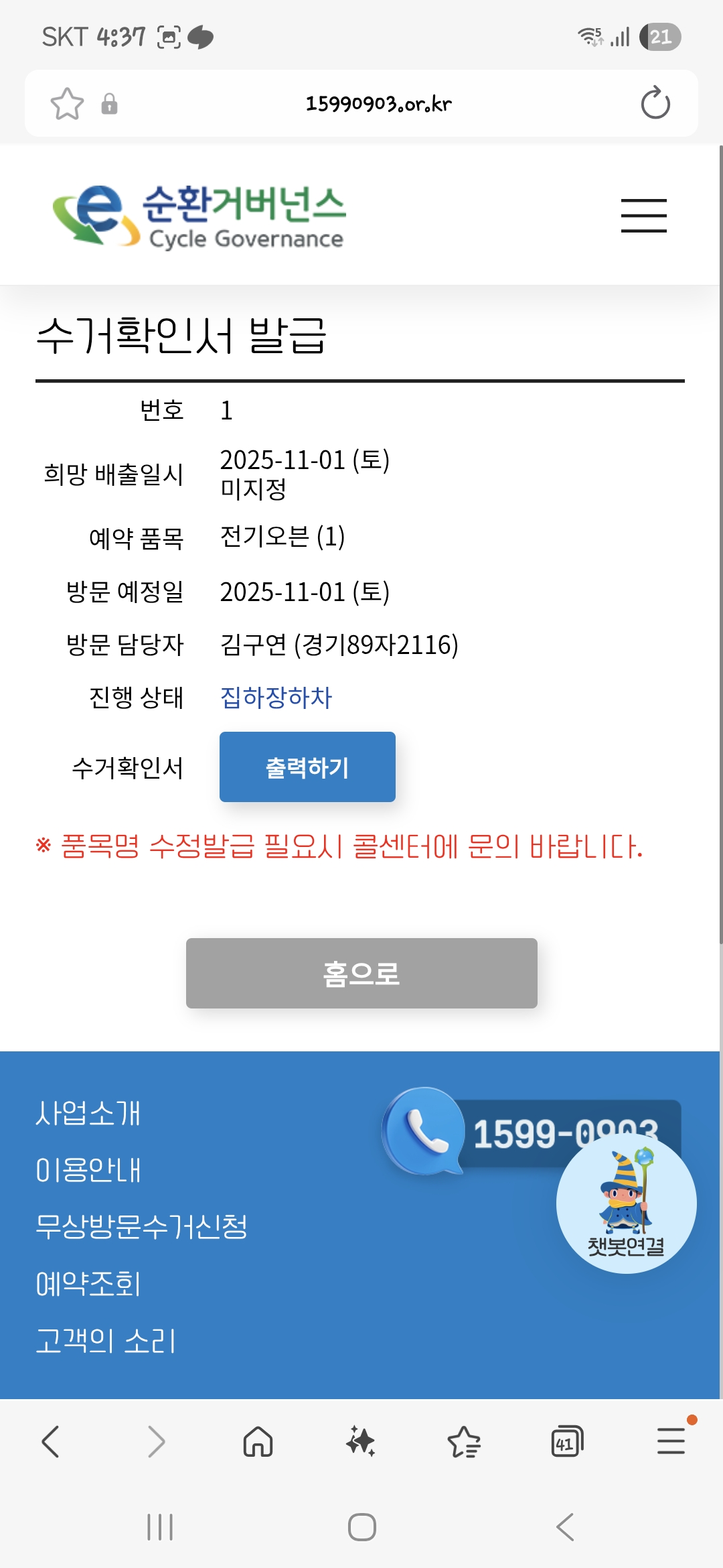 전기오븐 무료수거로 배출 완료했어요~